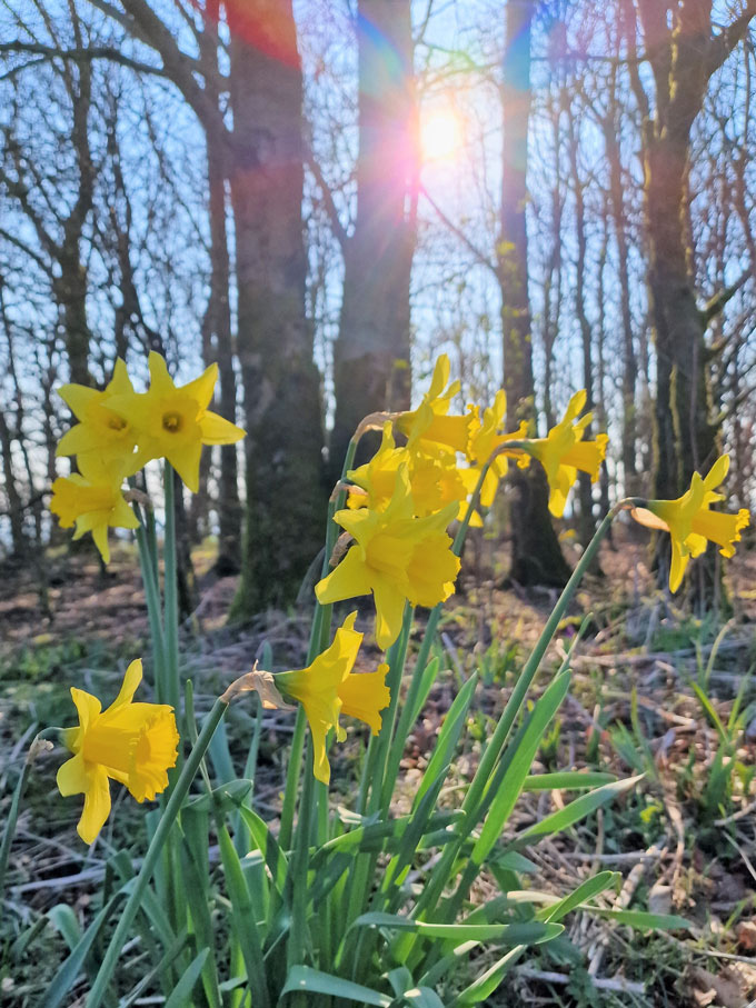 With the Georges Lane reached I took in the familiar lane peering left into a second field full of sheep while remembering the same time last year the same field was full of bleating lambs. Two horses trotted over to the edge of the field stopping just short of the wall, Brad and Holly too short to notice them we continued up the rise passing the daffodils I'd photographed earlier before spotting my car half way down Georges Lane who's windows were starting to reflect the start of a what appeared to be, another great sunset. |