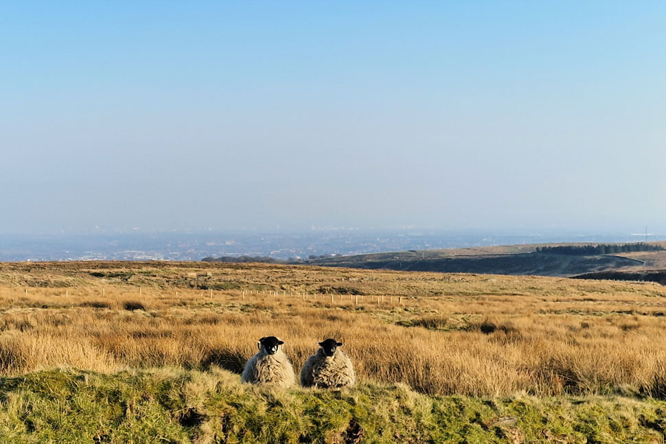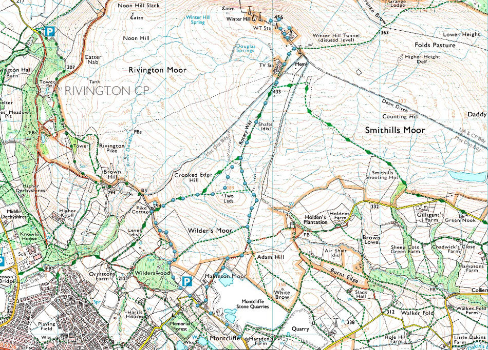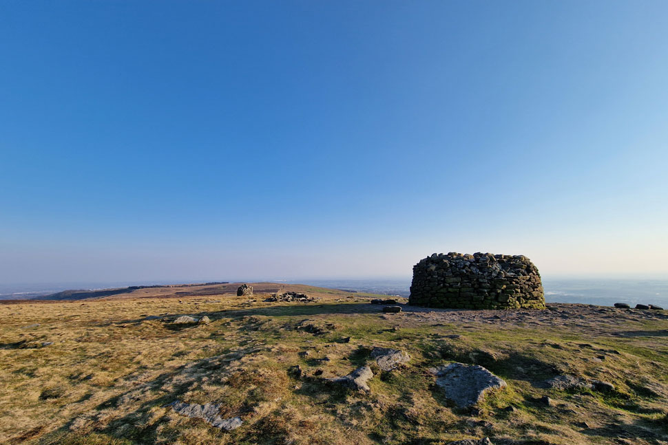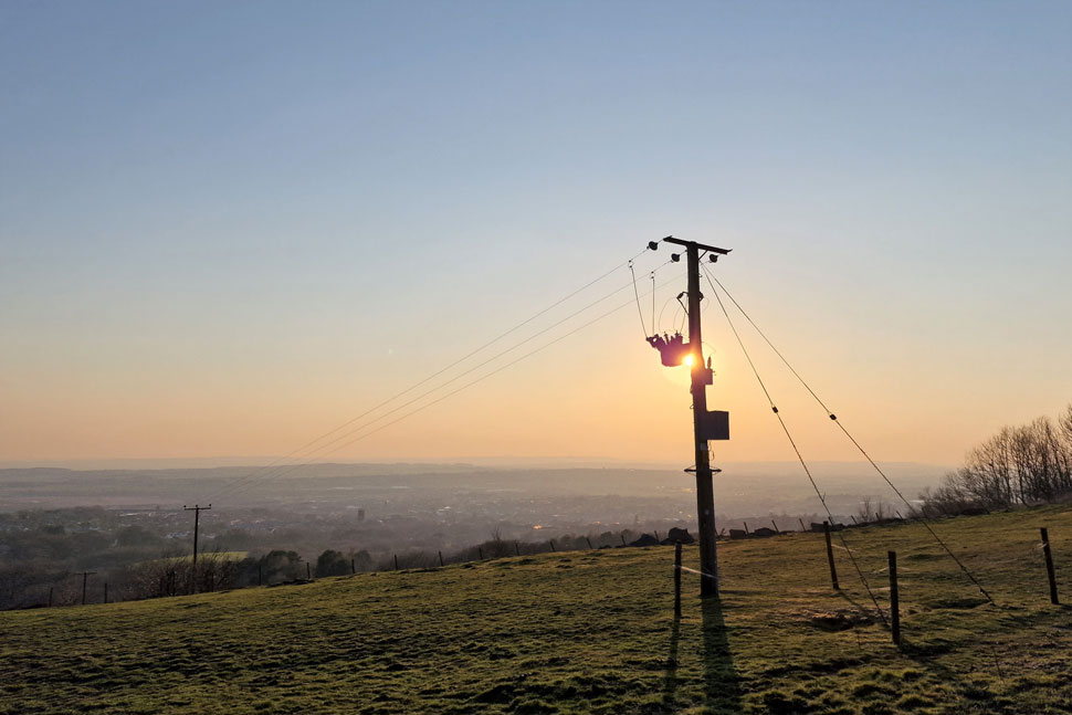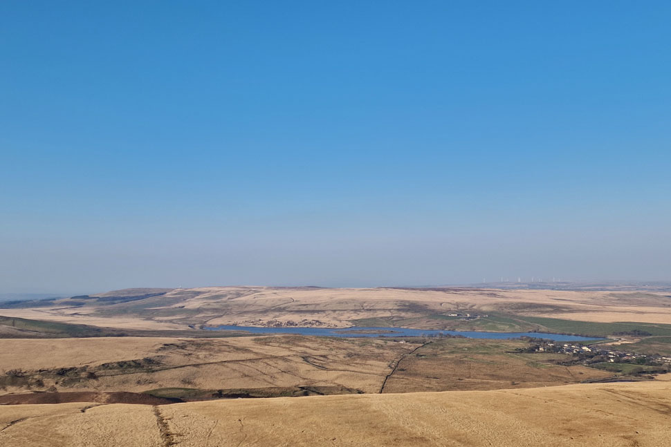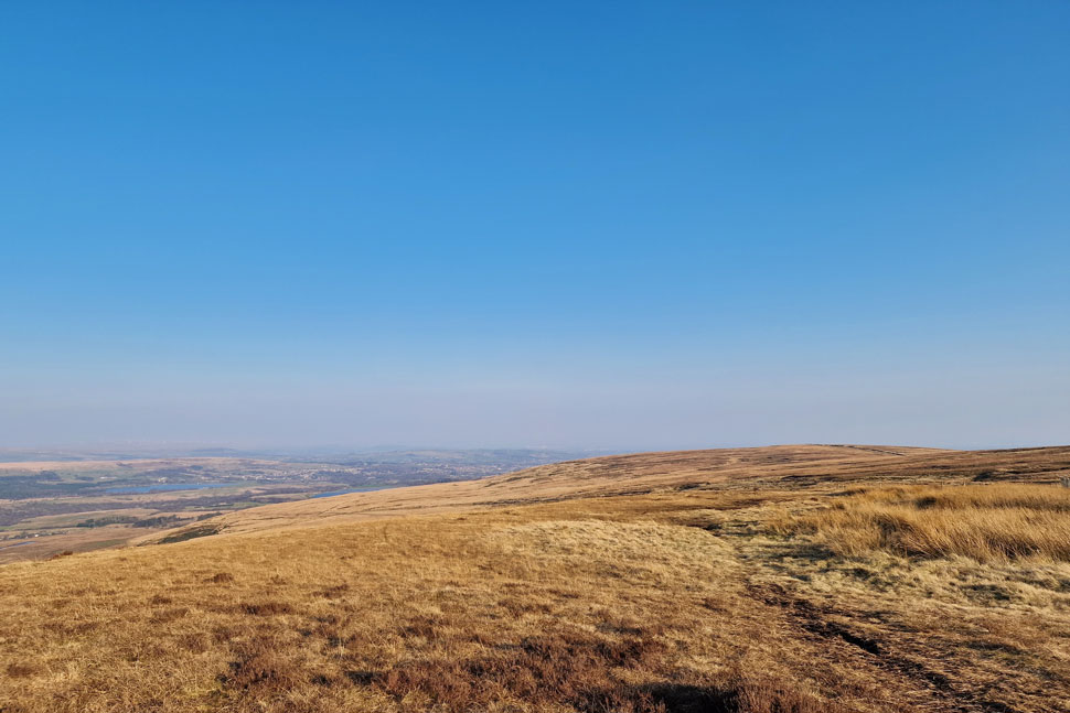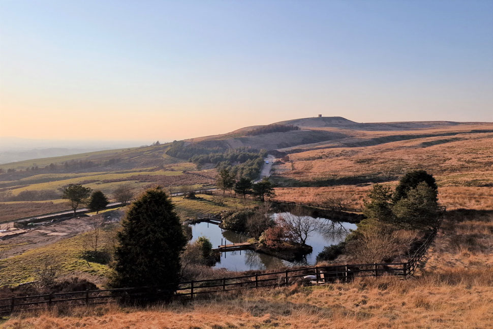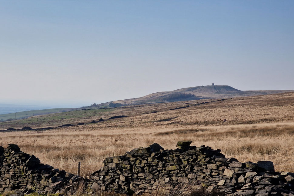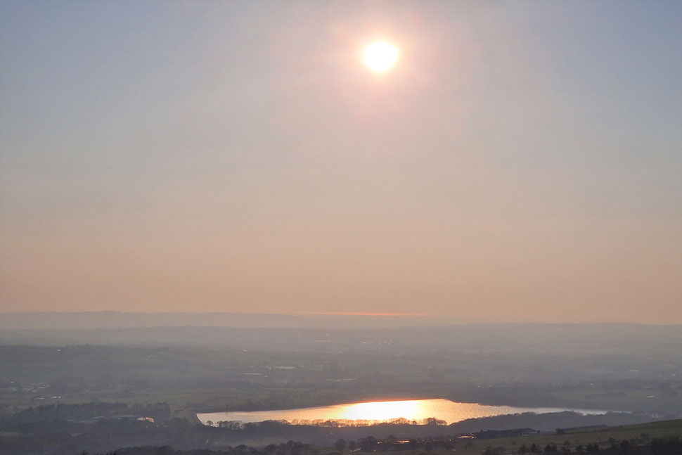 The light changed and the sun sank lower towards the horizon as I left Pike Cottage behind towards Wilderwood and Georges Lane thereafter. There was still folk milling about and from Wilderwood I spotted the two ladies I'd spoken to back on Two Lads making their decent. My boots kicked up dust below my feet while sunlight pierced through the trees and illuminated the opposite field.