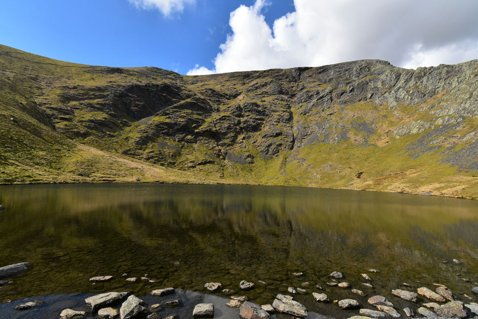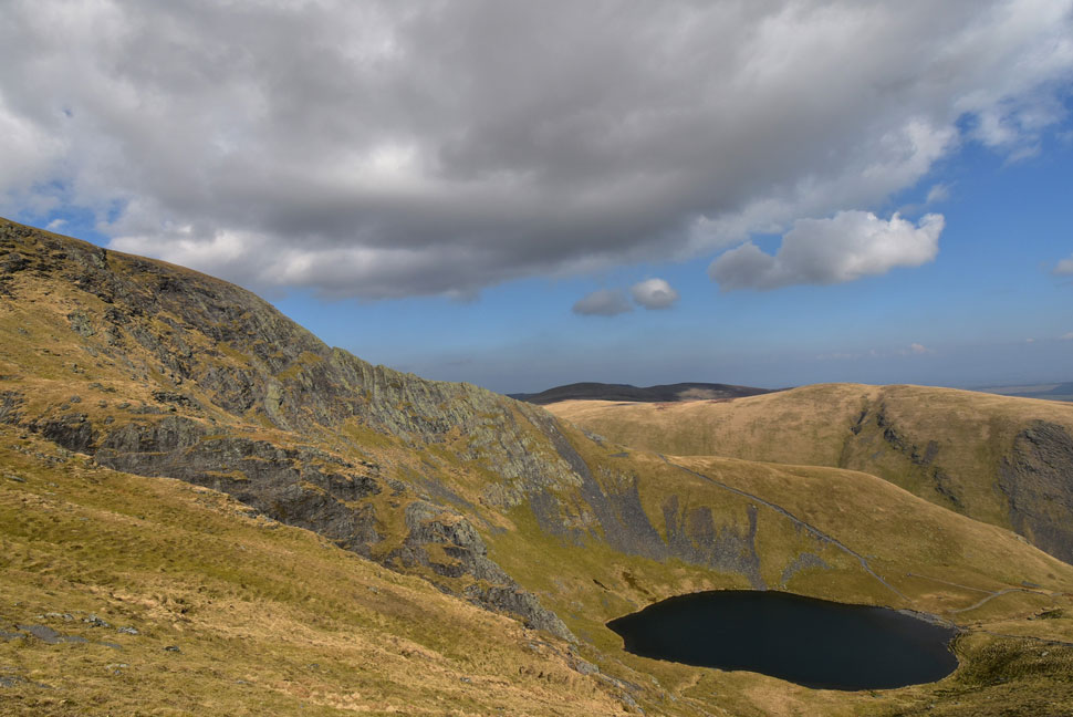 Scale Tarn, Bannerdale Crags, Souther Fell with Bowscale Fell seen in the distance. |