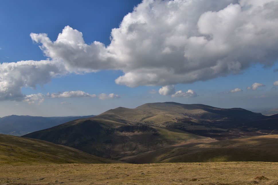Distant views towards Threlkeld Knotts, Clough Head and White Pike. |