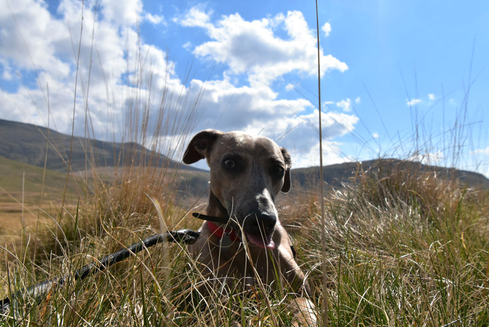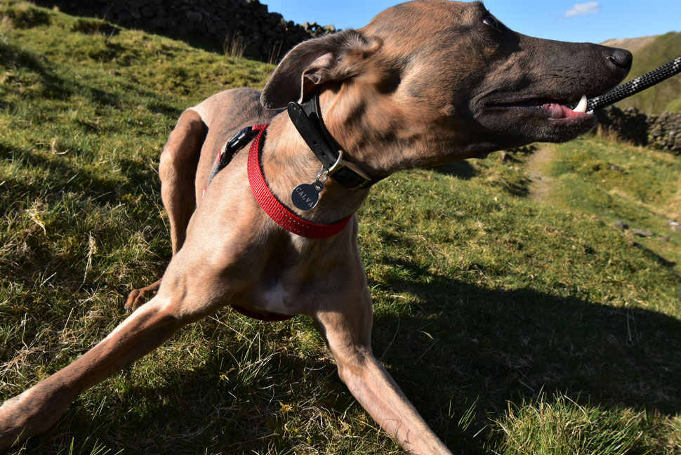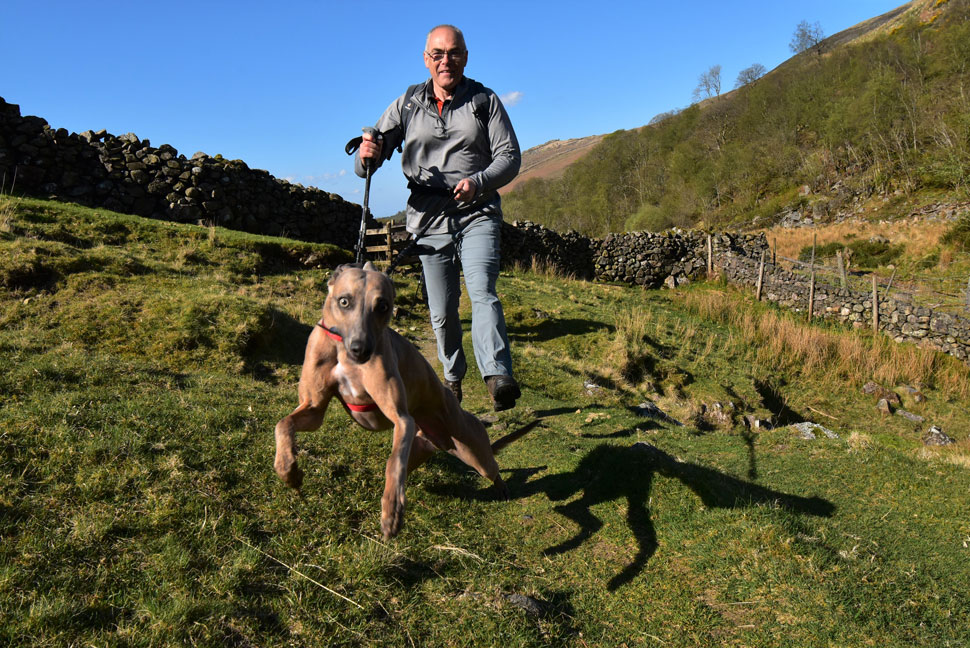 I asked David would he mind I publish this photo to which David replied of course! I was up ahead with David and Rod further back taking photos and to keep myself out of shot I ascended the hill side before returing to the path then crouched down to take a shot of Calva calling 'come on lad' Calva shot forward within a tenth of a second dragging David helplessly behind!