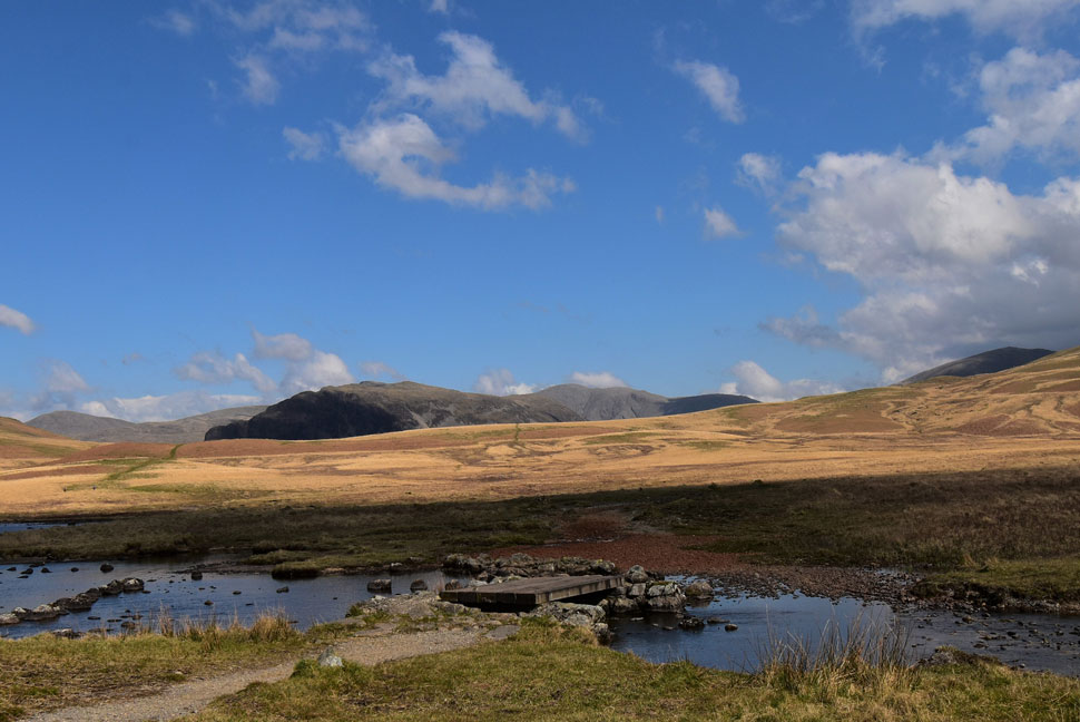 From Bulatt Bridge I took this photo looking towards Boat How (left) Miterdale Head (centre) and Tongue Moor (right) |