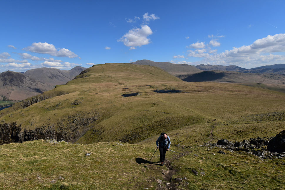 We started to climb across the fell side passing a couple in doing so before we met the main footpath at the stone wall. From here there's a couple of false summits to contend with but the views back over Wasdale Head made up for it. |