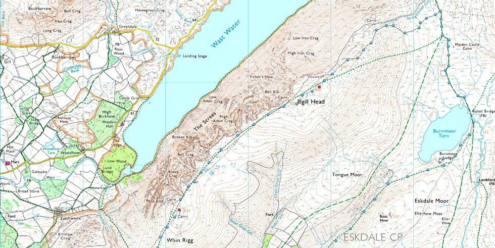 Illgill Head is known to most visitors as Wastwater Screes, although this later title is strictly appropriate only to the stone-strewn flank that falls so spectacular into the depths of Wastwater. |