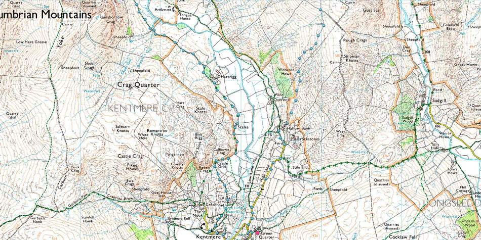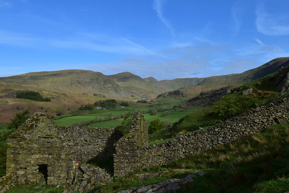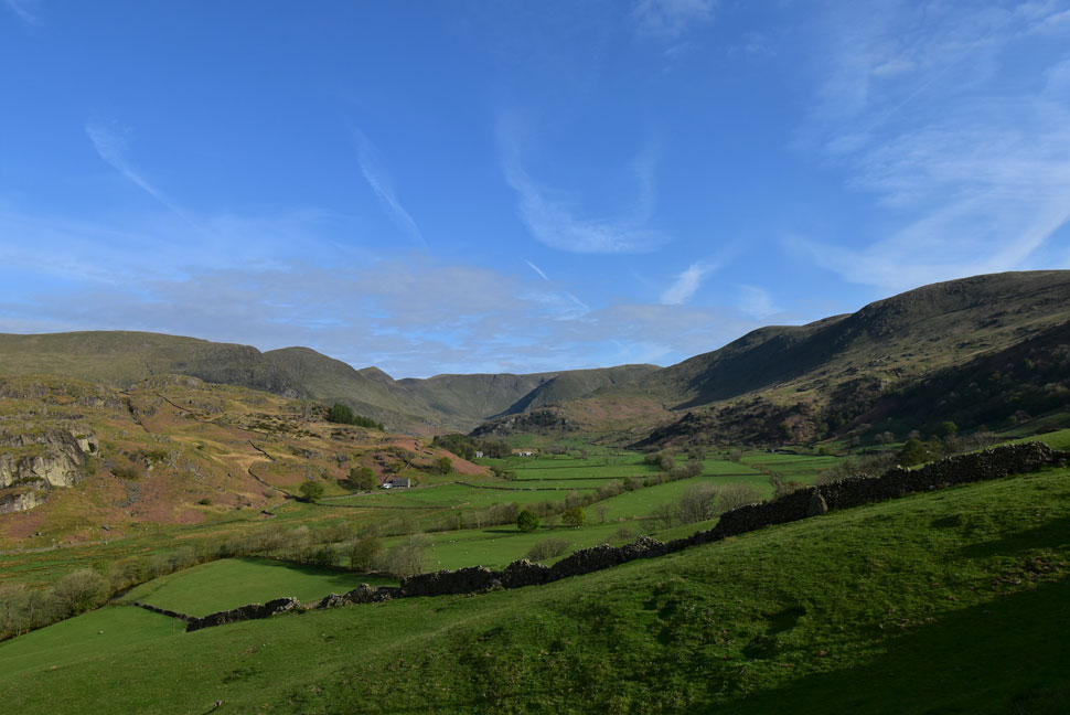 A high ridge, a counterpart to the Ill Bell range across Kentmere, rises steeply to enclose the upper part of that valley on the east. |
