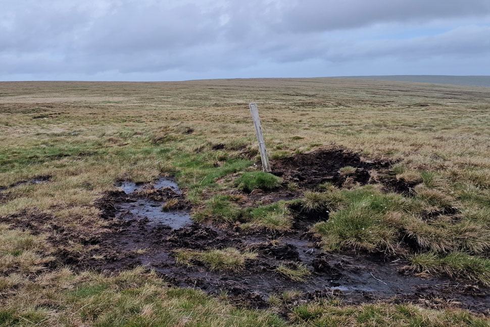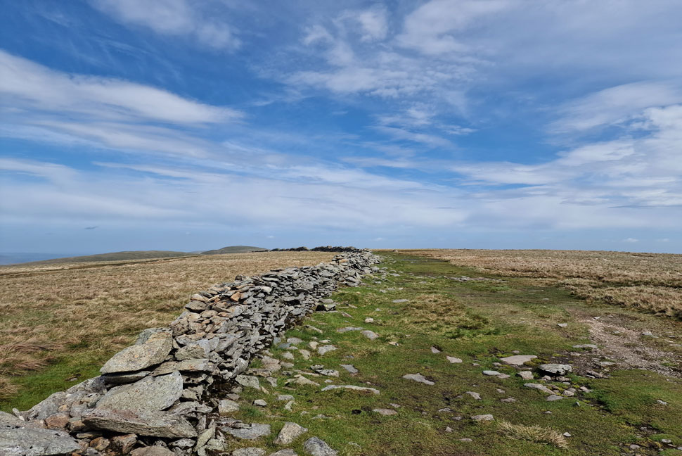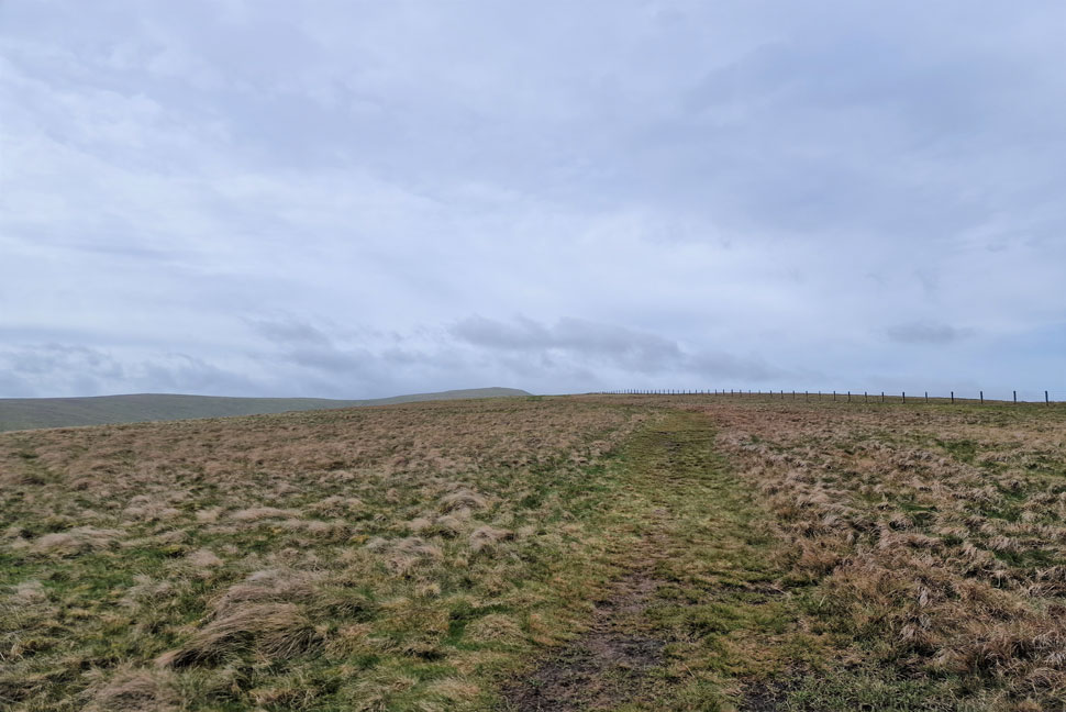 | Marked here by a wooden stake in the ground. Thankfully the spots of rain held and now it's time to leave the path and walk northwards towards Wether Hill summit (you do have the choice to follow the path towards Keasgill Head and then head right for Wether Hill) but I'm taking a more direct approach. |