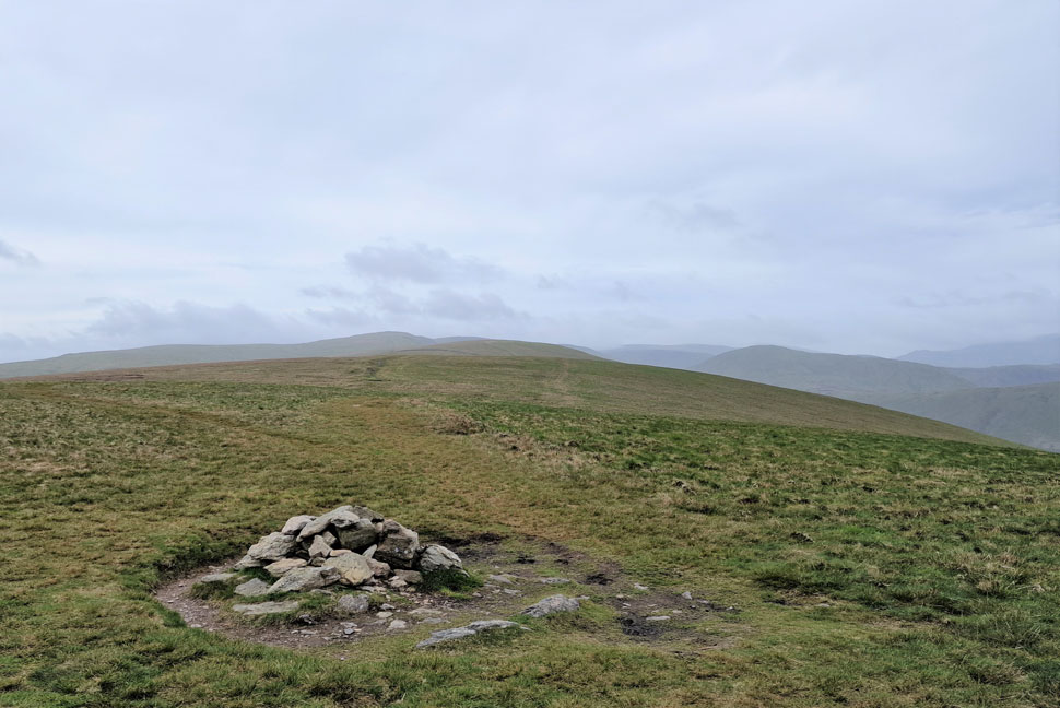 | It's such a pity the sun isn't out but never mind. I'm already starting to feel the seclusion as I leave views of Haweswater behind for the smooth grassy slopes of Low Kop and High Kop. |