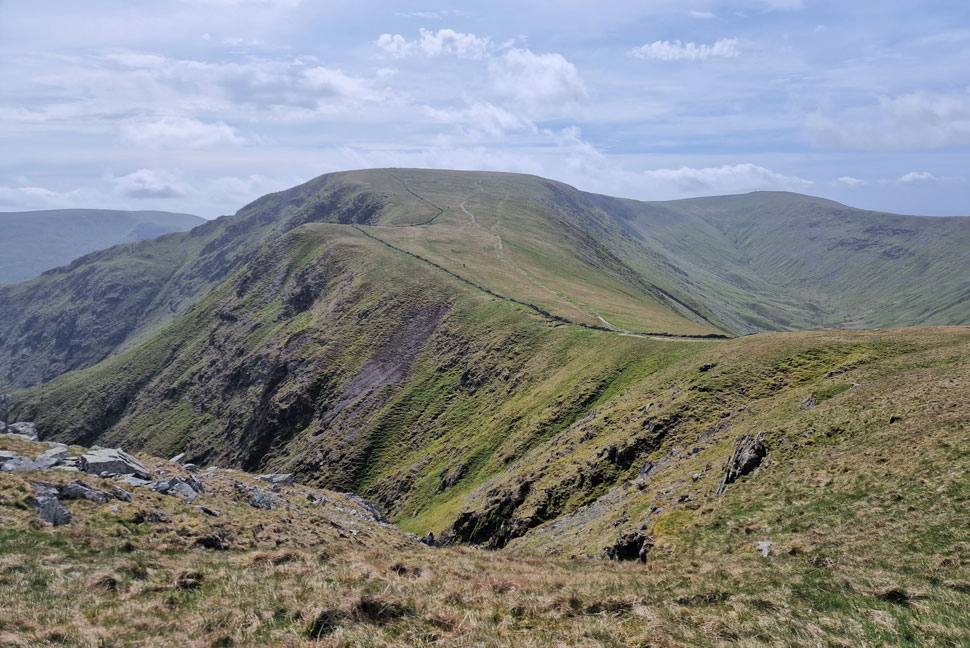 | Long Grain rolled over the shoulder of Measand End which despite its steepness offered fantastic views over Four Stones Hill and Haweswater. |