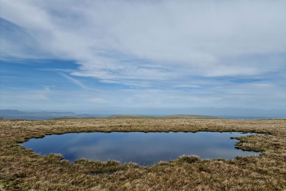 I downed pack and eased myself down into the shelter finding purchase on a rock seat that wobbled when I sat on it, it was like sitting on the kings throne. What wind there was the shelter took care of it as I chomped hungrily into my lunch while taking in the view of a pool about a mile away which shimmered in the midday heat, I sat up to see how far the chap had gone but he'd well and truly vanished.