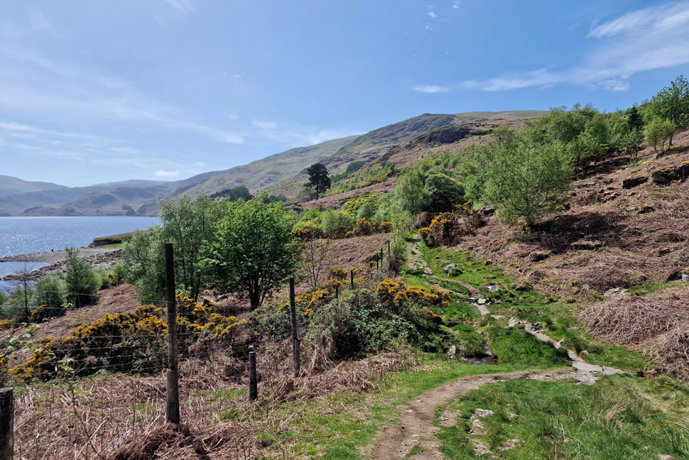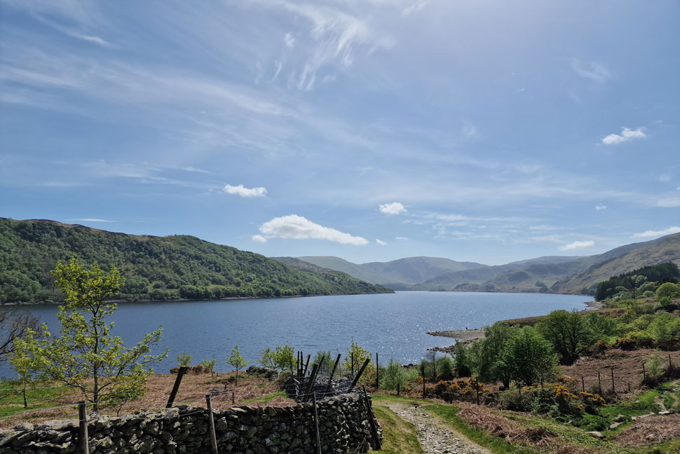 | After the descent of Measand End my plan was to head over to Measand Beck then follow a footpath down to the shore path but the area was full of families enjoying the waterfalls and seeing that there was a gate in the deer fence to my immediate right I descended via Pultsgill Sike instead which probably added an extra ten minutes walking time but I was enjoying the sunshine too much to complain. |