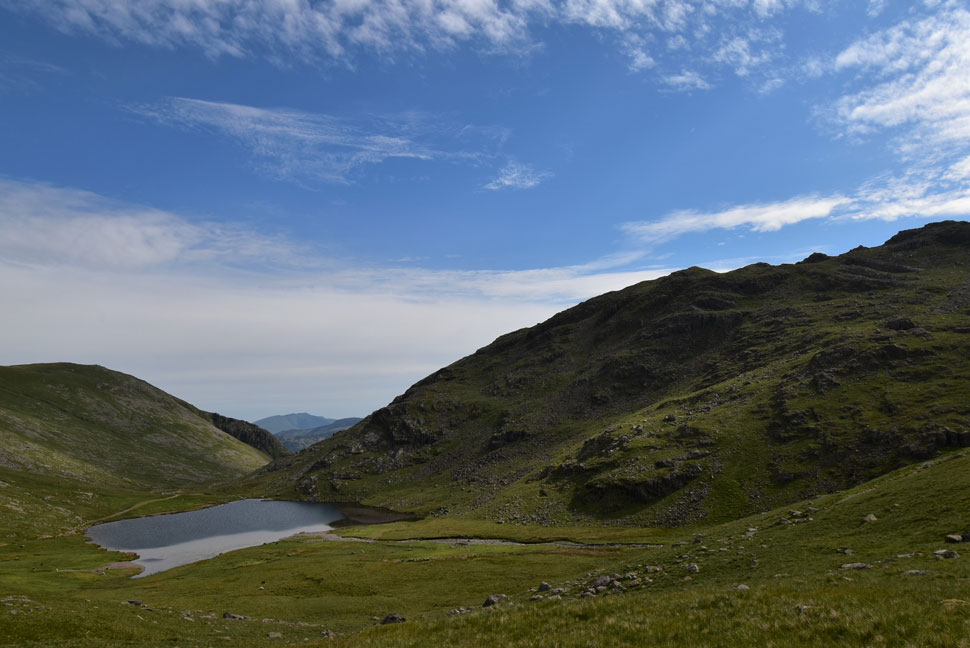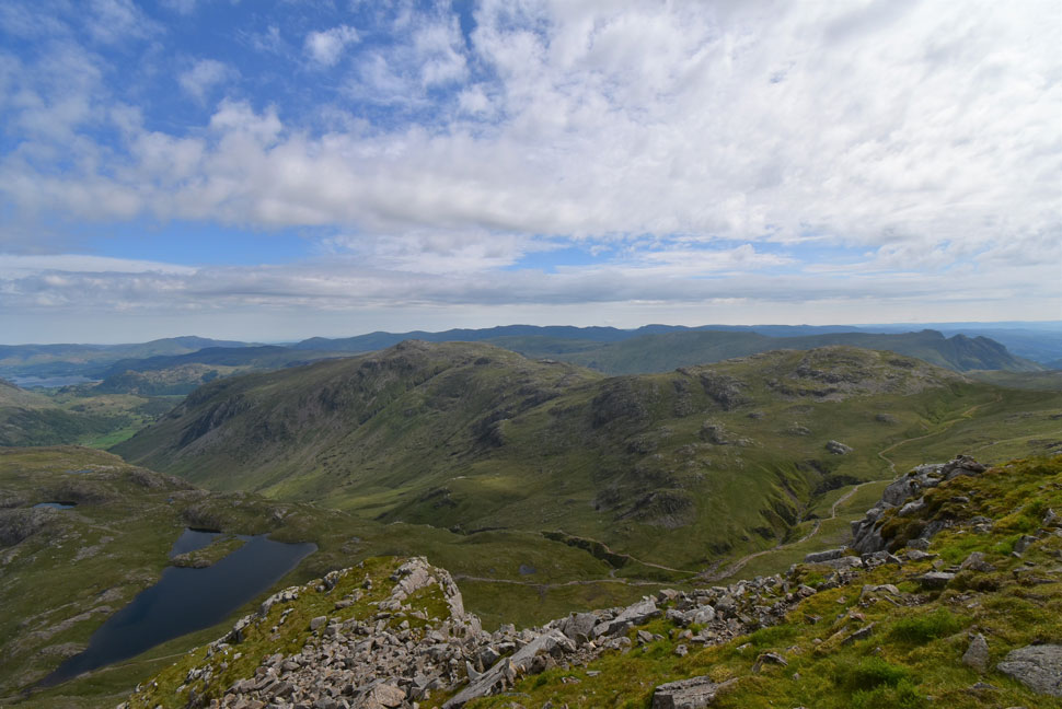 If you look carefully you might be able to spot Lambfoot Dub (seen between Round How and Sprinkling Tarn in the photo) |