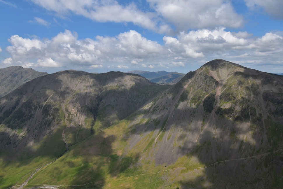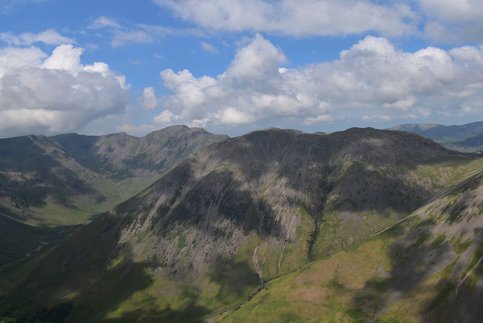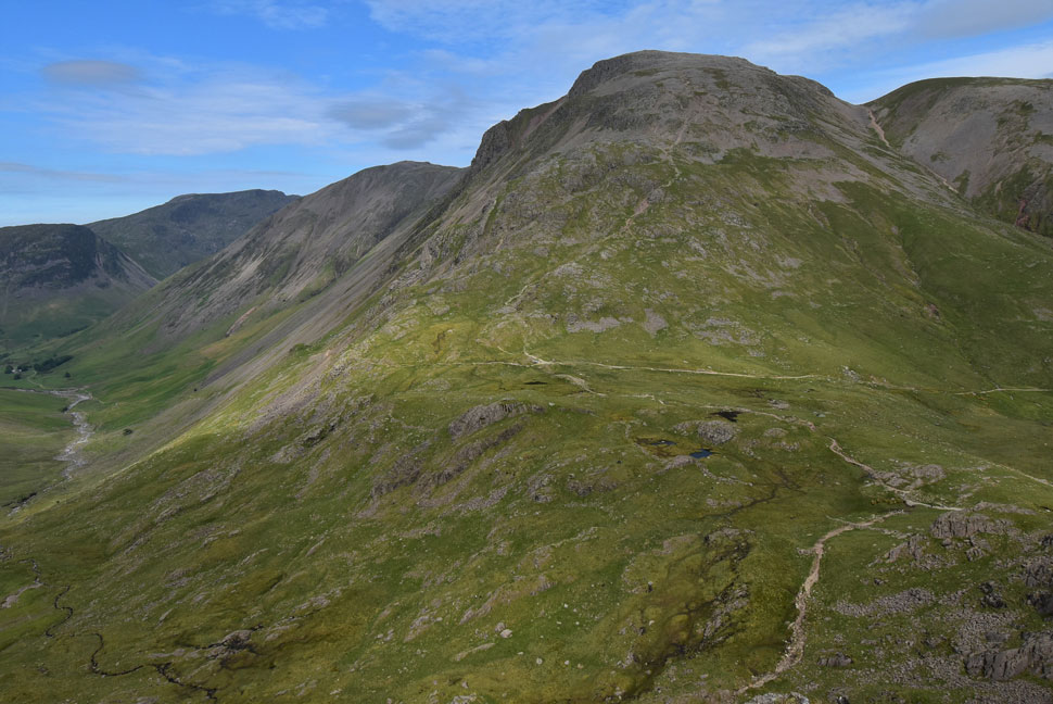 Red Pike (Wasdale) Kirk Fell, Great Gable, Green Gable, Sty Head and Styhead Tarn from The Band. |