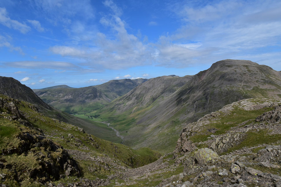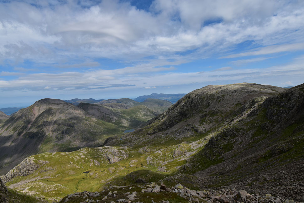 And back down towards Wasdale Head with Piers Gill and Lingmell over on the left with Yewbarrow, Red Pike seen centre and Kirk Fell and Great Gable over on the right. |