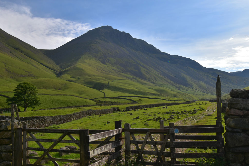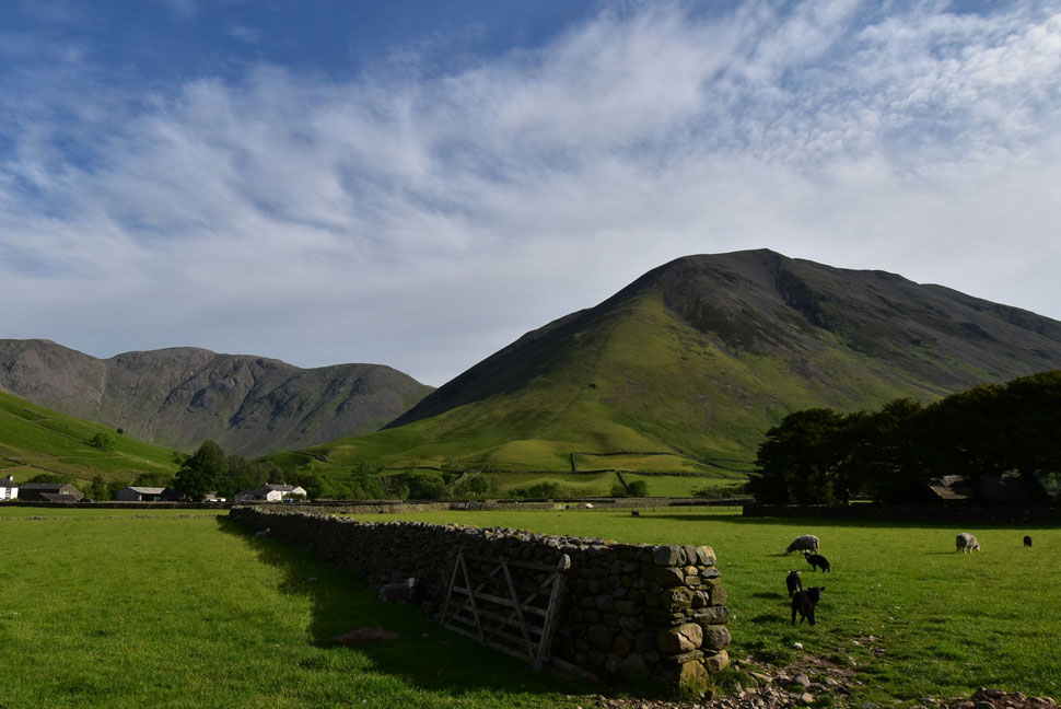 Pillar, Mosedale and Kirk Fell seen beyond Wasdale Head. |