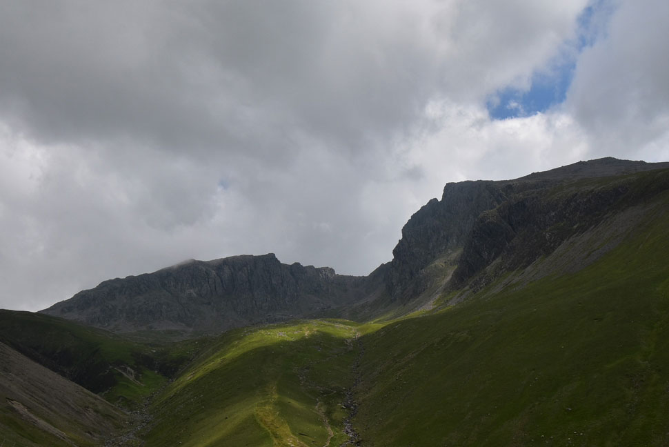 Here looking into Mosedale with the mass of Kirk Fell in the foreground. |
