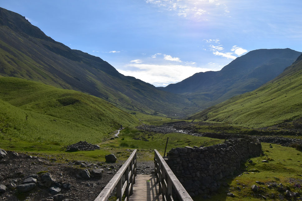 Views towards Sty Head as I cross the footbridge over Gable Beck. |