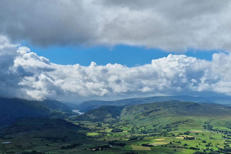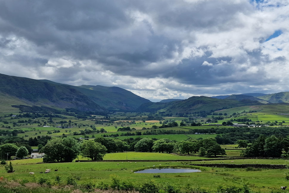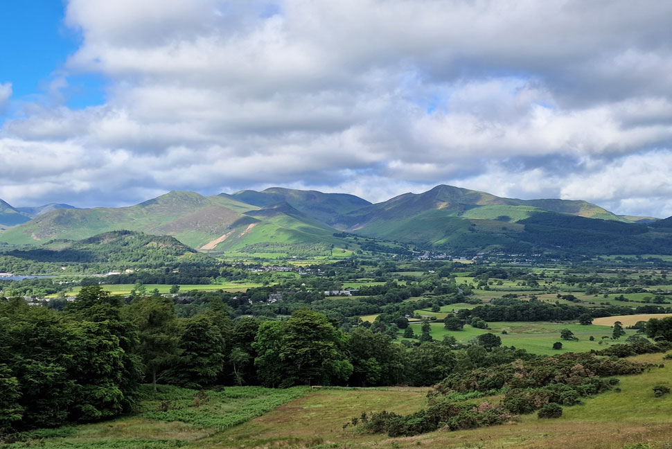 Views over St Johns-in-the-Vale towards the Helvellyn range. |