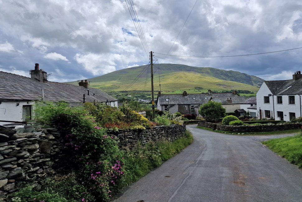 Threlkeld Village with Clough Head in the distance. |