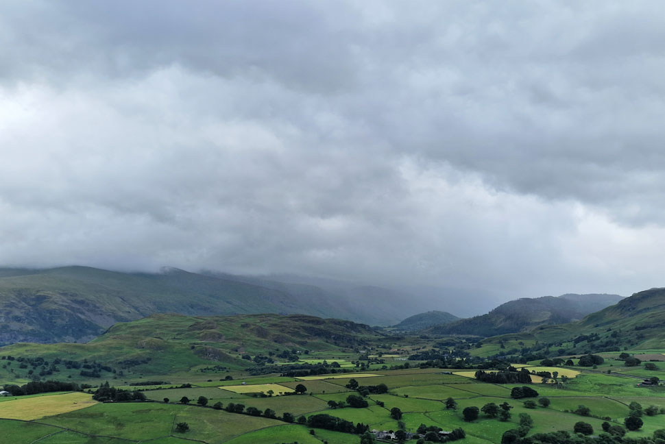 Where the cloud appears to have lifted above the central fells and it's stopped raining now. |