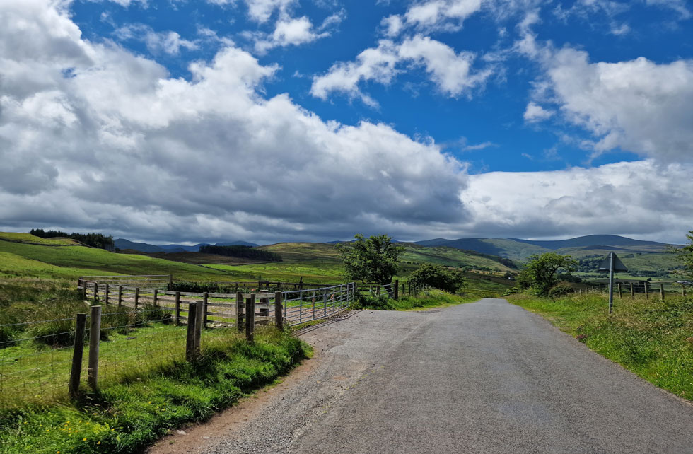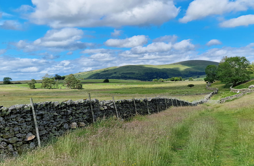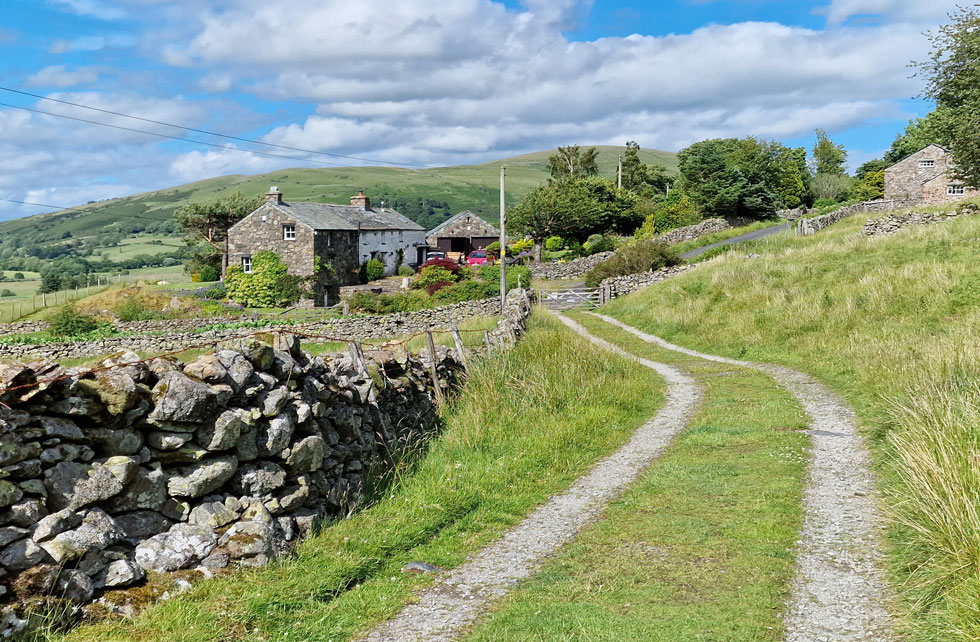 We left the bridleway behind as Home Farm was passed before joining this track at Ulcat Row. From here the fantastic views continued as boot met tarmac. |