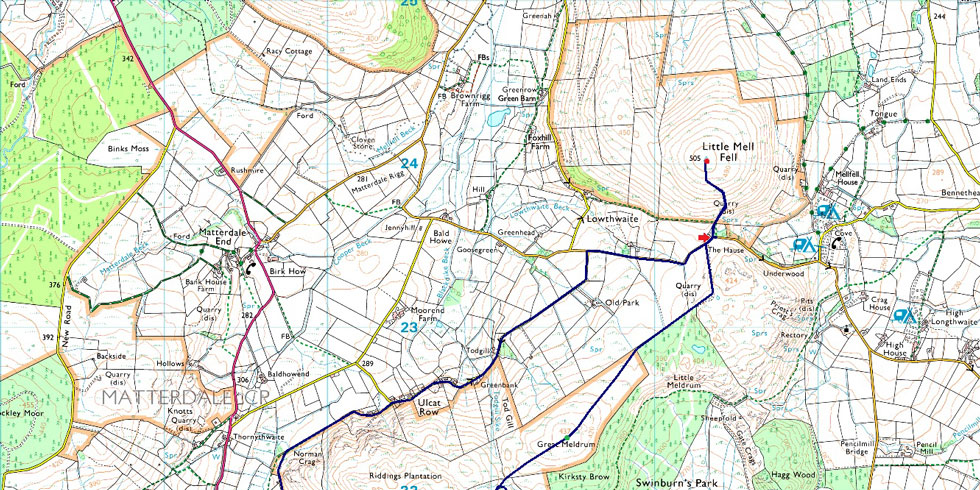 The Hause - Little Mell Fell - The Hause - Great Meldrum - Gowbarrow Fell - Shooting Lodge - Memorial Seat - Below Green Hill - High Force - Below Norman Crag - Ulcat Row - Old Park - The Hause |