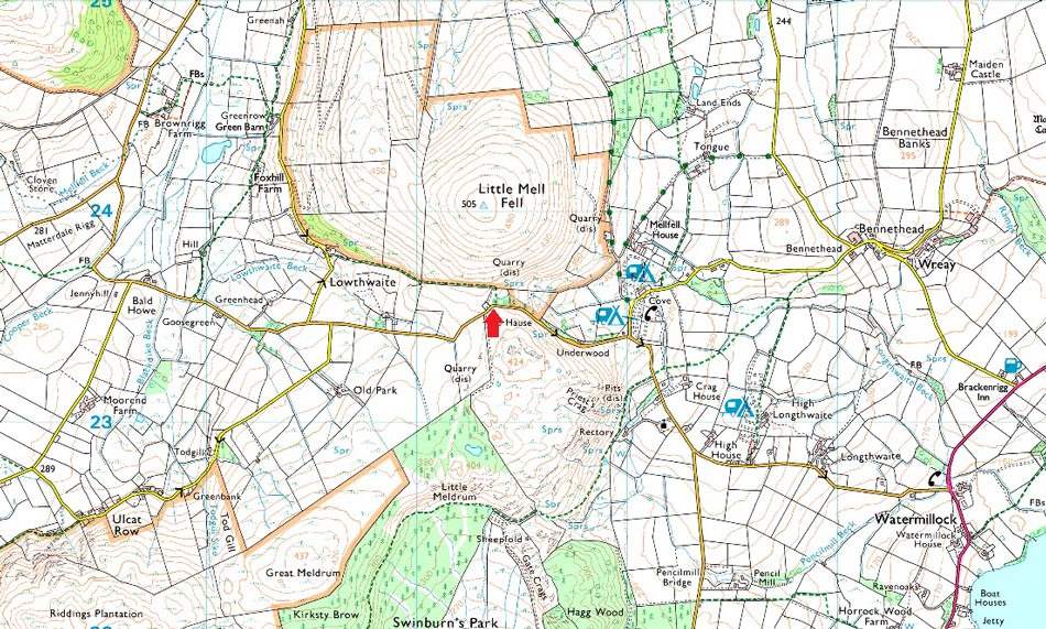 Little Mell Fell is an outlier of the Helvellyn range and the last Lakeland fell in the north east before high country falls away to the wide plain stretching to the district border. |