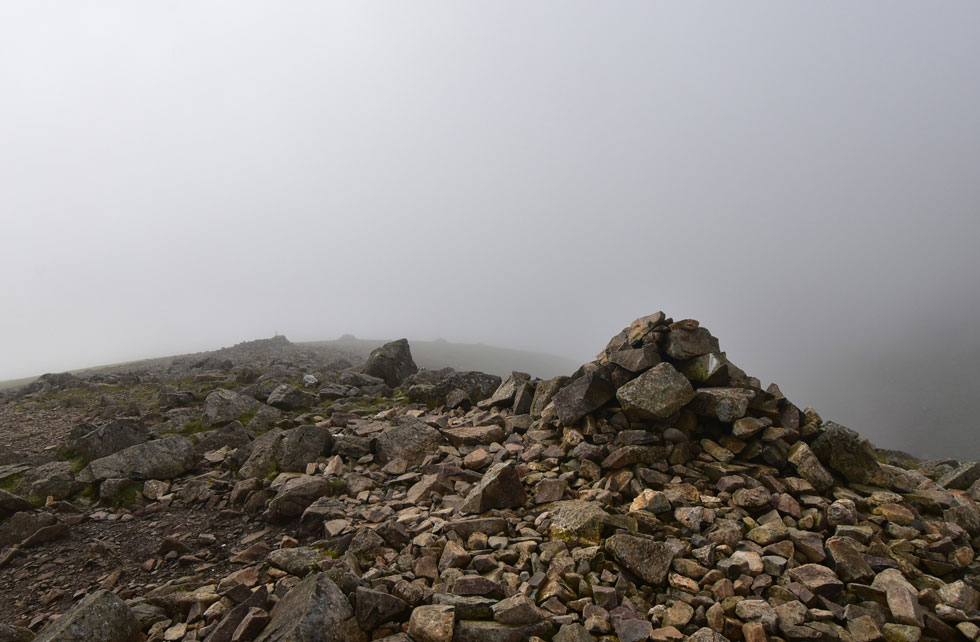 We followed the cairns all the way towards the summit and found the couple who had over taken us while we were sat in the summit shelter on Green Gable on the other side of the summit rocks. I joked that I was going to write a strongly worded message on Trip Advisor referring to the lack of views on Great Gable and I think that the couple thought I was serious until I laughed it off.