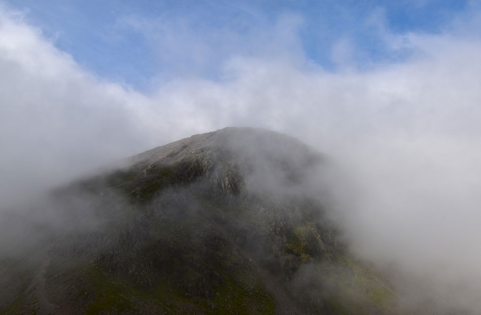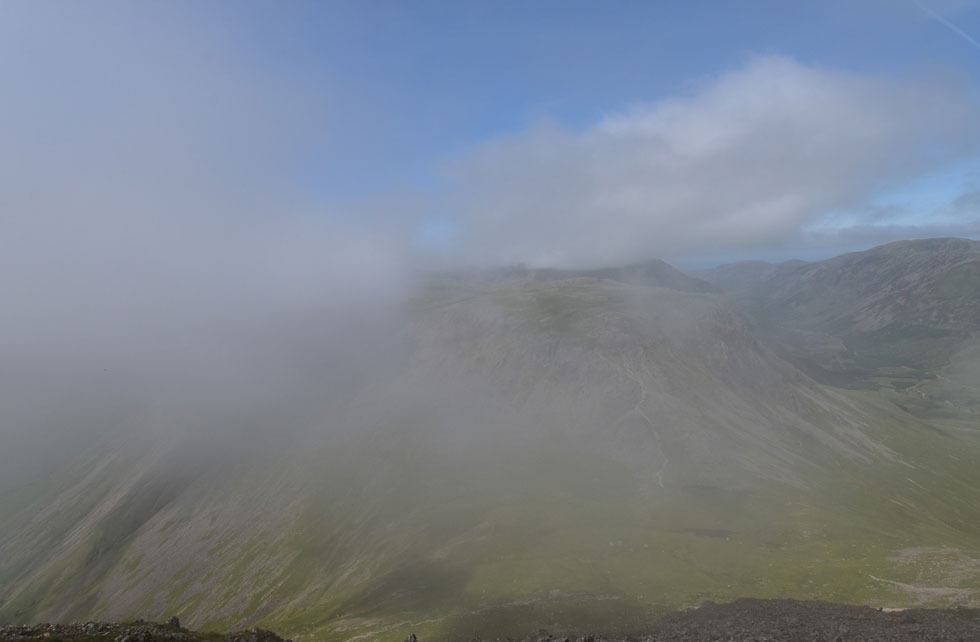 It looks like the cloud is completely cleared from Great Gable now with just a few pockets of mist lingering over the higher crags. |