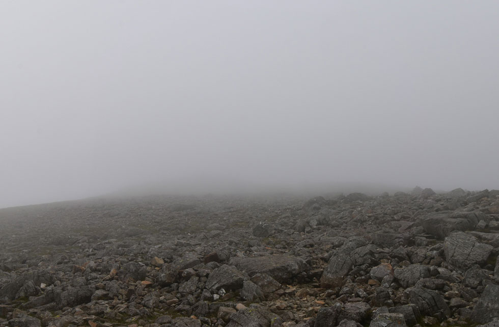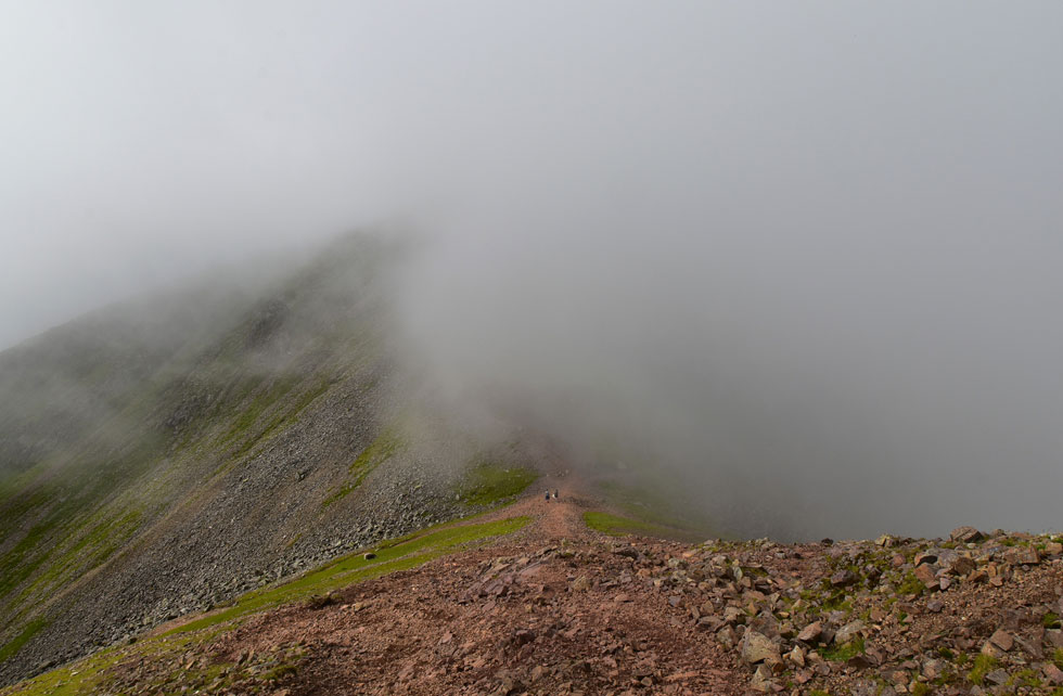 We left Grey Knotts behind and with it our views. As soon as we entered the cloud we must have lost what felt like 10°C and with the temperature taking a plummet the thought of adding a pair of gloves did cross our minds but being the stubborn fools that we are we let our hands get cold. |