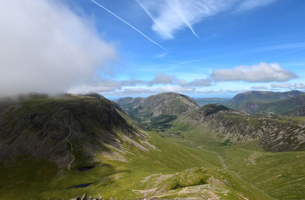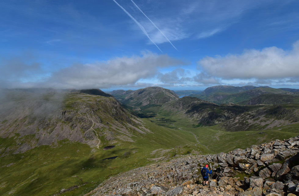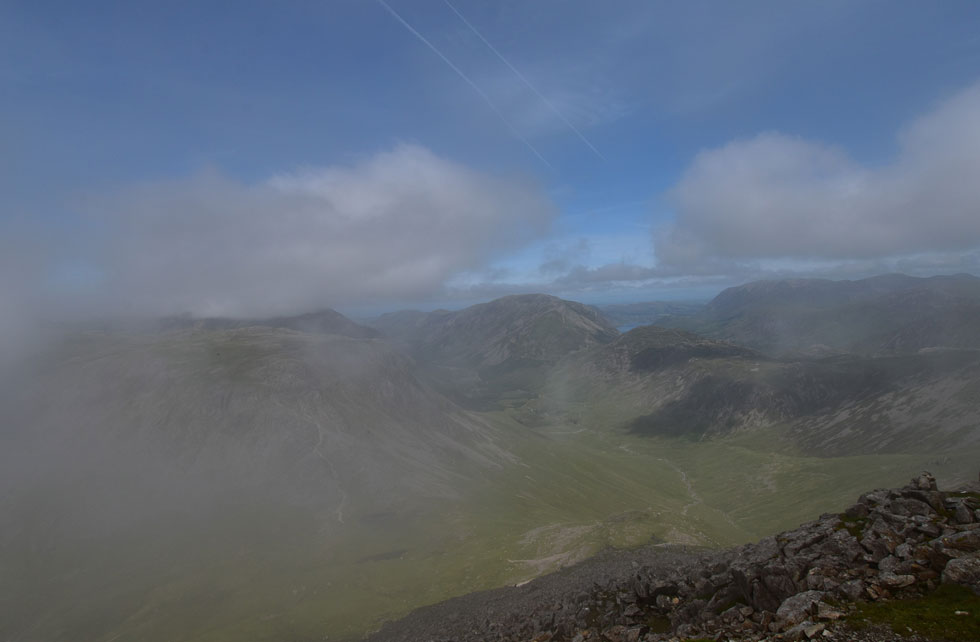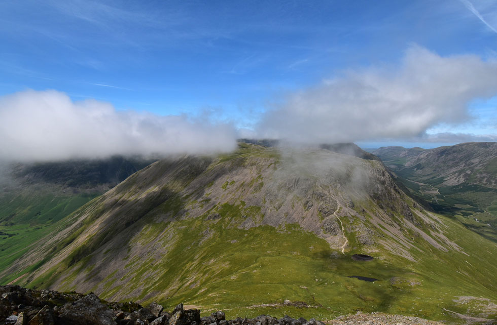 We began our ascent on Green Gable while taking in the views over the Gillercomb valley as the cloud continued to clear and just when we thought we were in the clear... |