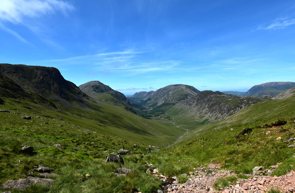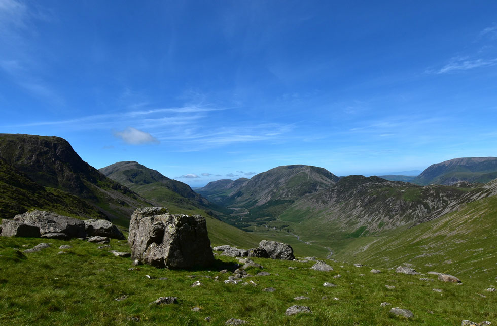 Looking back on Green Gable, Windy Gap and Great Gable from Stone Cove. |