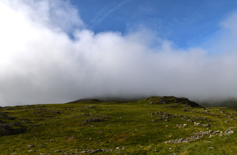 We left Brandreth in the cloud and crossed Gillercomb Head where the cloud seemed to be lifting which was great news. |