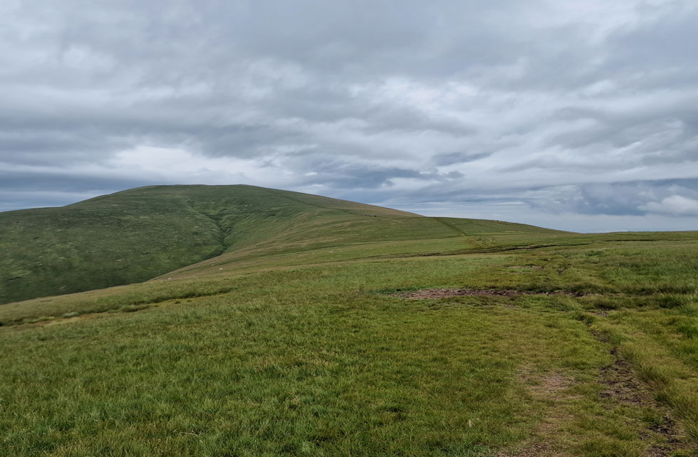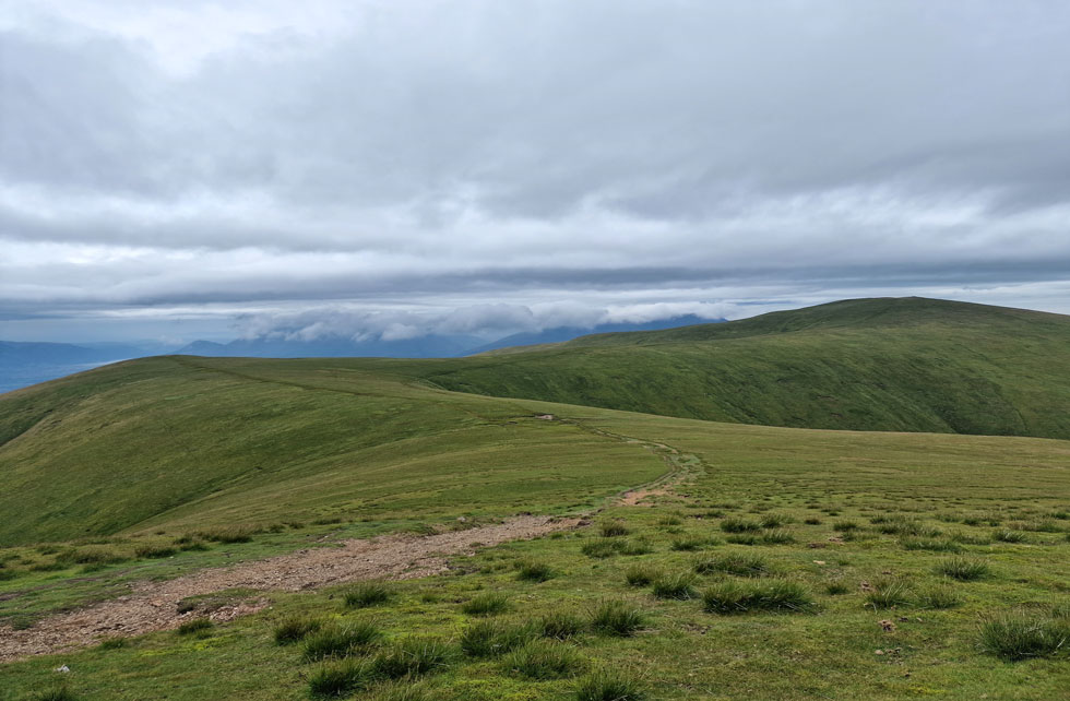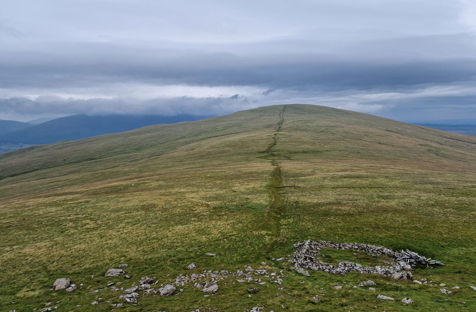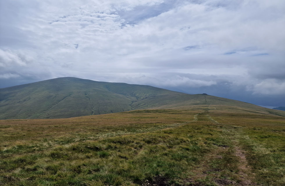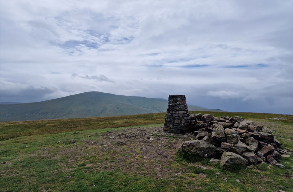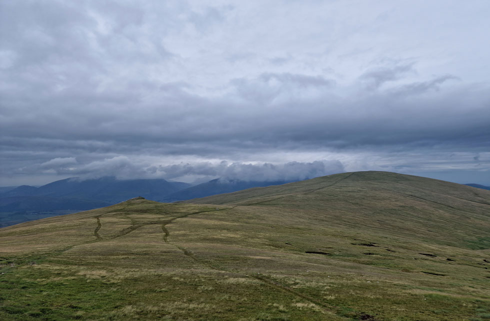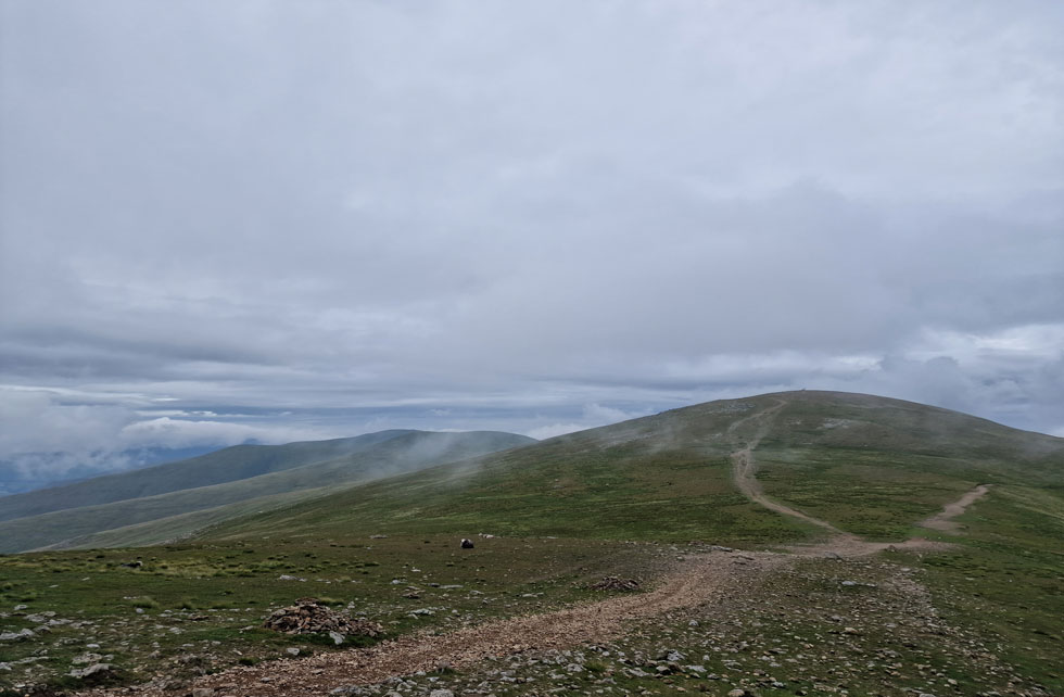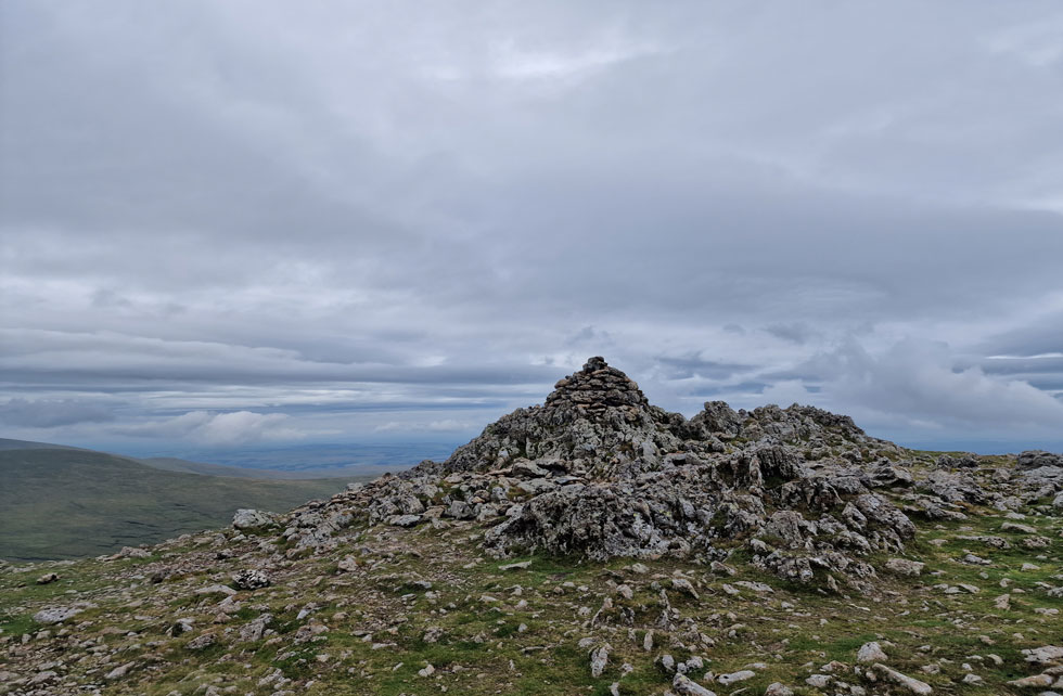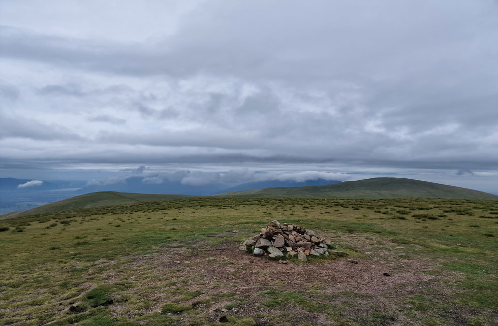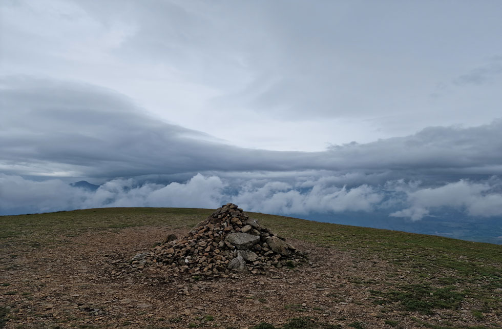 By now we were just below the cloud line but I also noticed that the cloud had started to gather below us too and with it, came an increase in wind. We continued to climb no more than a half a dozen steps by which time we could feel rain in the air - no sooner had we felt it we were in it. Within the same pack of walkers all downed packs more or less at the same time to add waterproof jackets, this was no passing shower it was here for good. One chap at the front of the pack added his waterproof jacket then must have thought 'sod this' and began his descent smiling as he passed us. The chap was obviously a novice but I admired his decision. He was a solo walker caught in a pack of fellow solo walkers who could have guided him to the summit but it wasn't to be, I quite liked that.