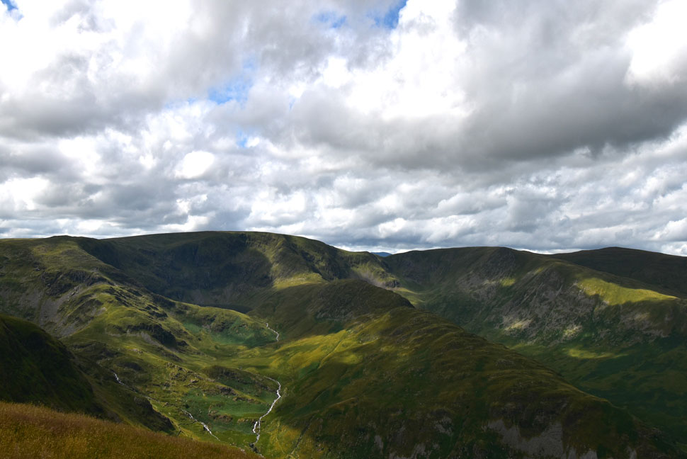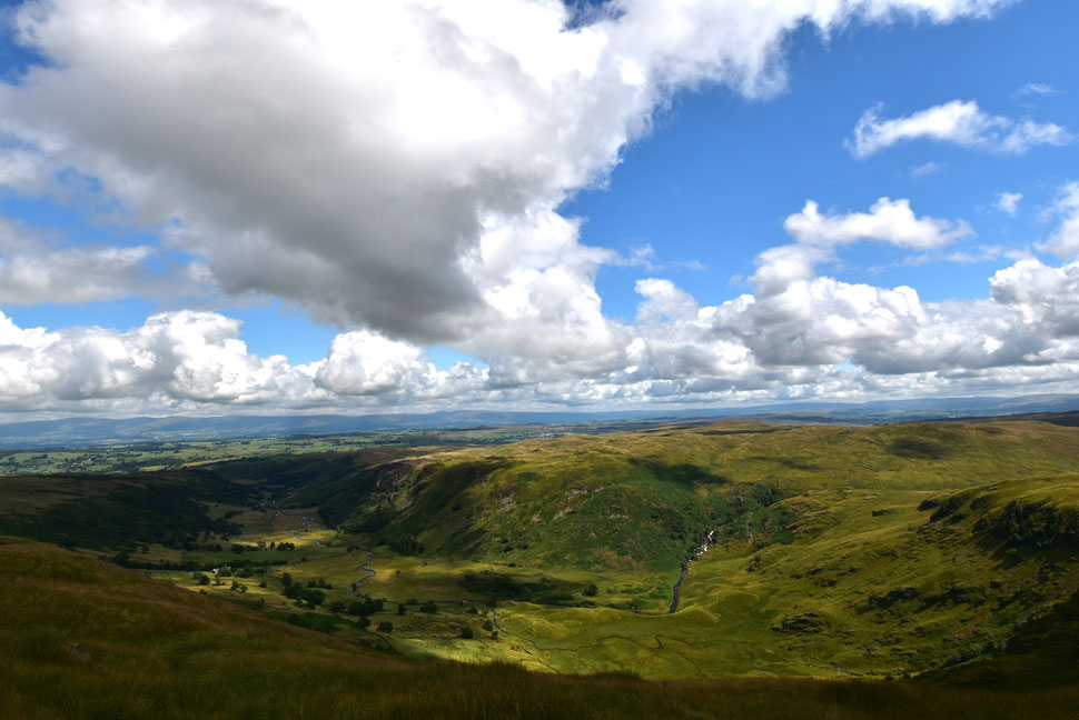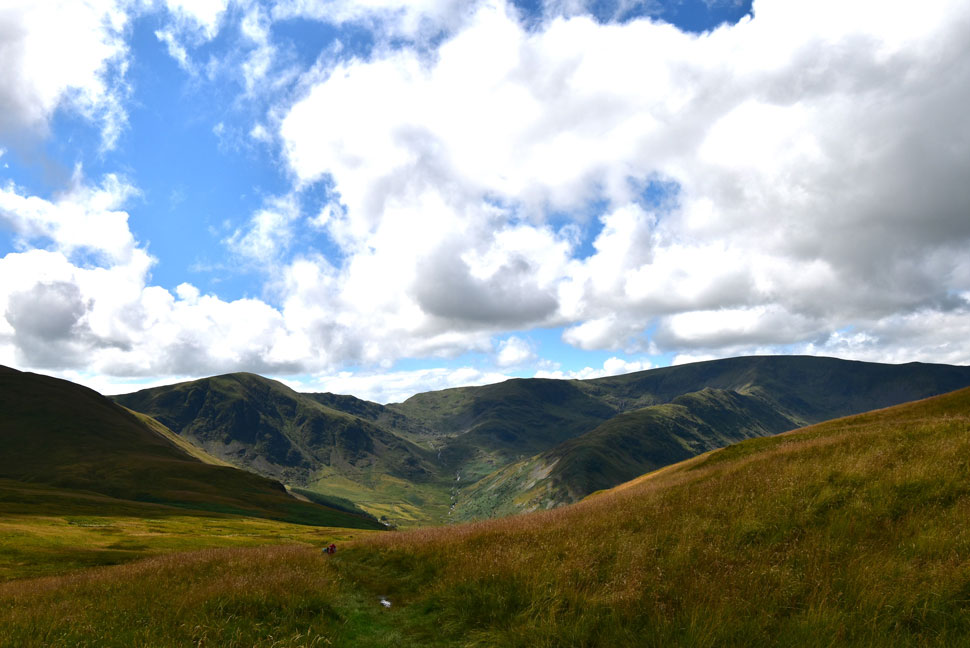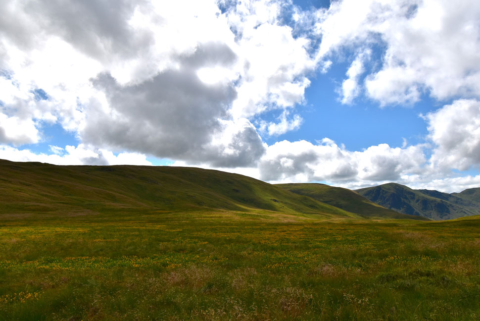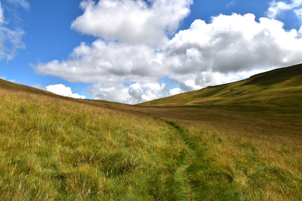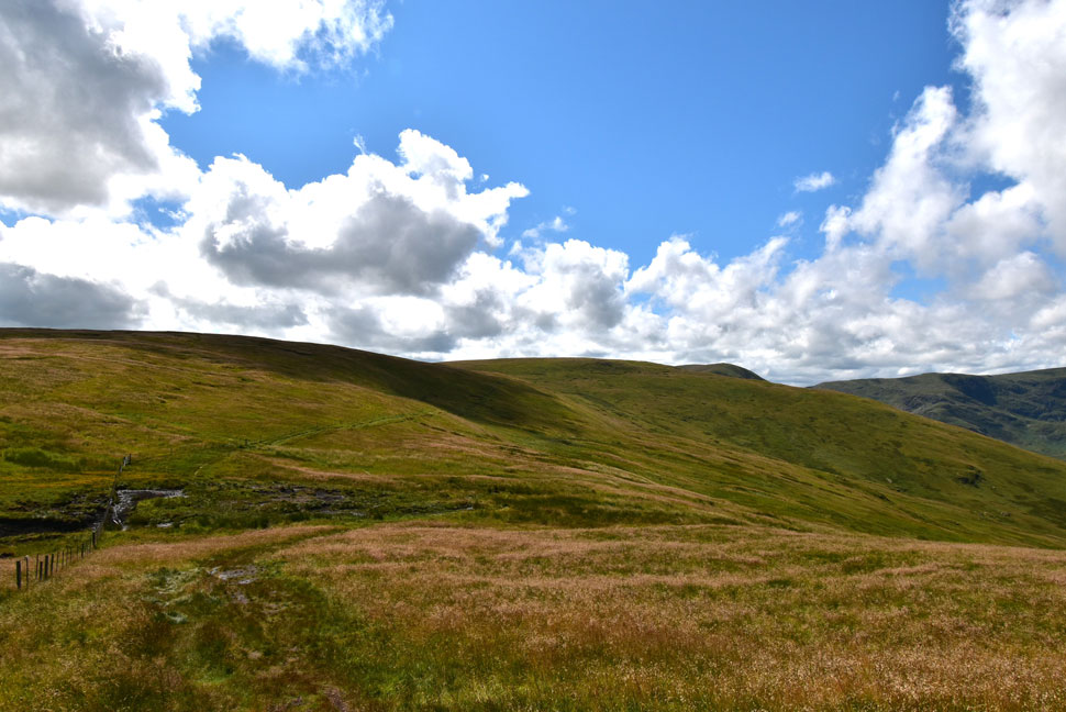 Closing my tailgate I left the lay-by and opened the gate then began the steady climb towards the ruined Peat Huts not forgetting the view I had over my shoulder. |
