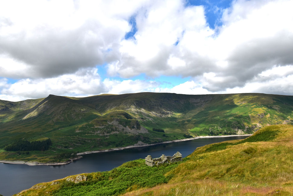 There was no need to add a layer over my technical T and should I need one the 'back up' fleece that I keep in my pack for emergencies would do just fine. It was warmer than expected and I hydrate by finishing the last half litre of hydration during my drive north before making a mental note that I'd only filled my 3ltr bladder with around 2.0ltrs of Summer Fruits, given todays route it should be plenty. The sound of a gate latch opening then wood clashing against wood broke the silence, it was a girl with a Collie and a Jack Russell in tow who by now were making their way towards Mardale Head. It's a longer walk than you think but the views make up for it.