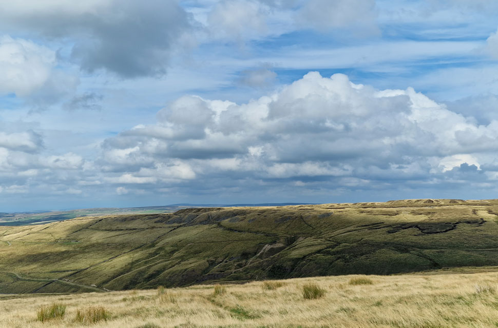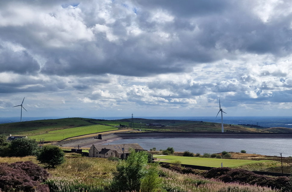 With Knowl Hill behind me and, under a pleasantly hot afternoon sun I took in the views over a glistening reservoir before stopping to look back on Scout Moor which was everything I'd imagined and more. Despite Knowrl Hill summit being busy the only other folk I'd seen where from afar and apart from them I'd only been passed by a chap on a mountain bike, the rest of the walk I'd had to myself in 'discovery mode'