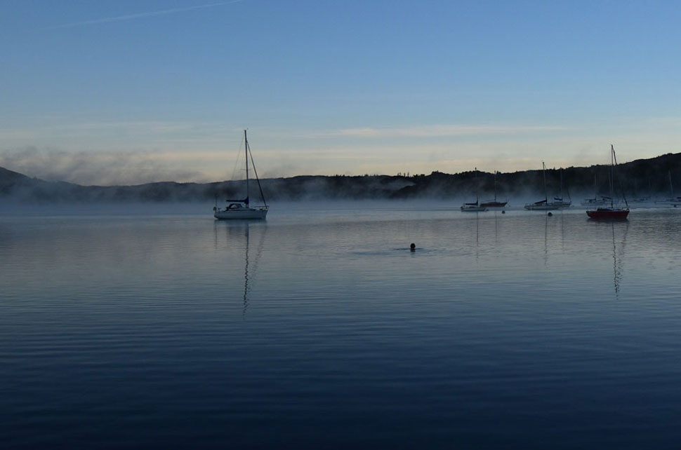 Mist loomed over the surface of Windermere as I drove through Waterhead so I stopped the car to take a few photos. What I didn't expect to see was this wild swimmer peacefully treading water. Rather them than me it's barely 3°C |
