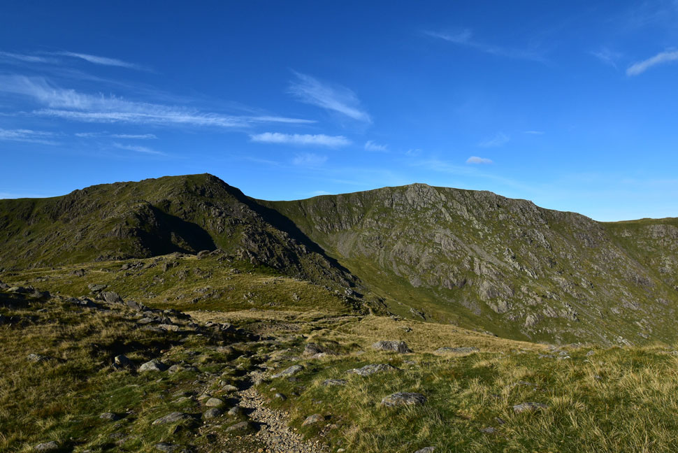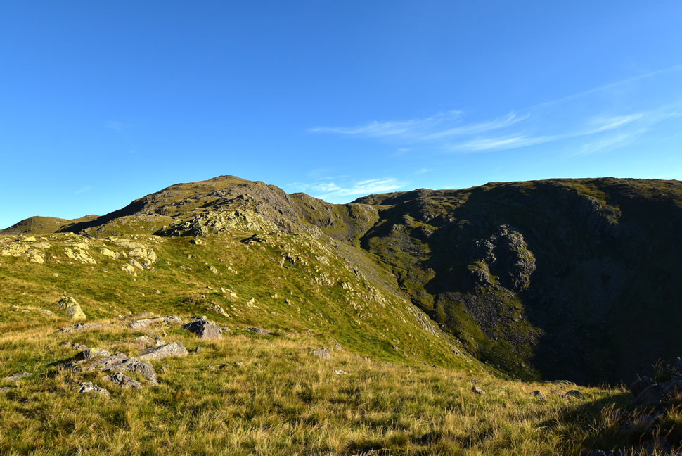 From Levers Hawse I look back on Great How Crags, Swirl How and Great Carrs. |