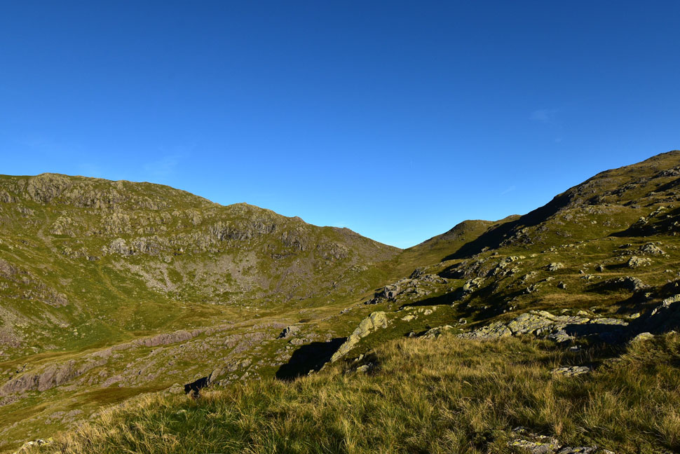 Great How Crags, Swirl How, The Black Sails ridge and the Red Dell Valley from Coppermines. |