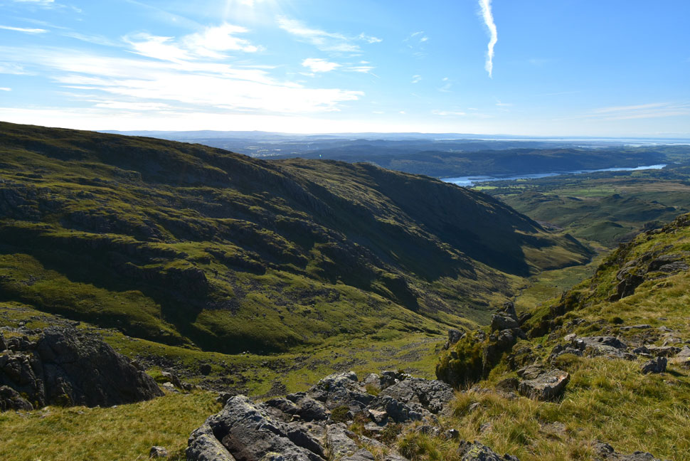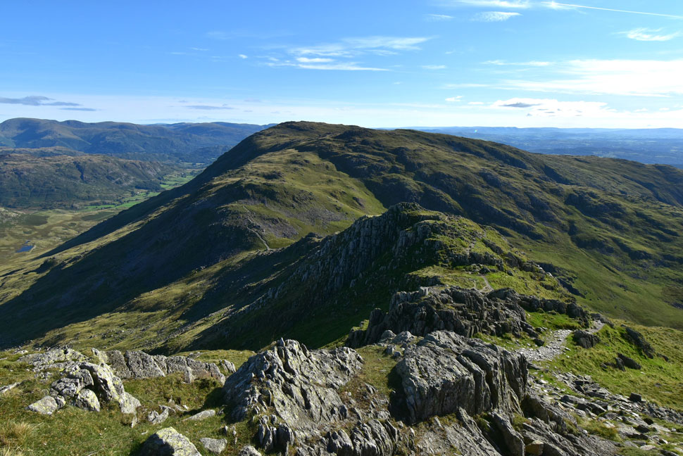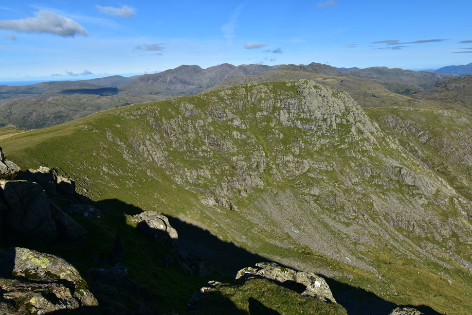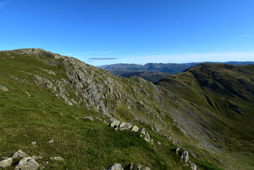 With the Black Sails Ridge, the Red Dell Valley and Wetherlam beyond. |