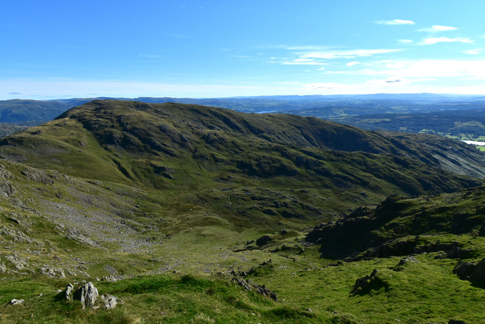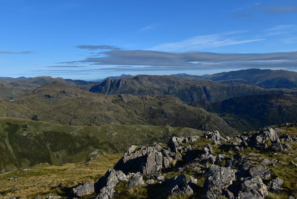 Great How Crags, Great Carrs, Swirl How and Wetherlam from Brim Fell summit. |