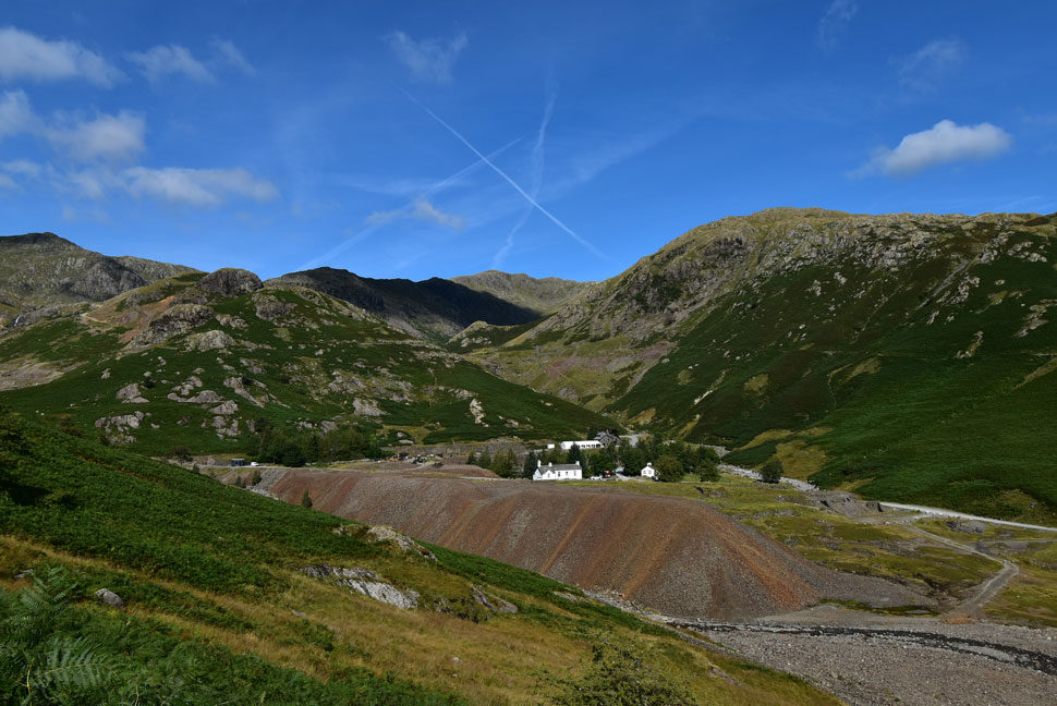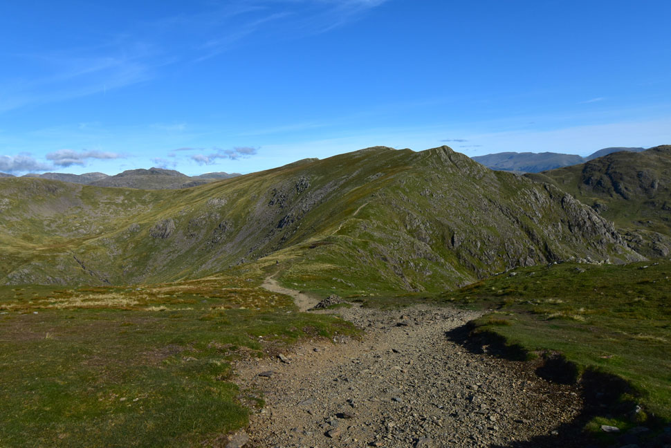 You might just be able to make out the prominent path in the bottom right corner which passes over Red Dell Moss and joins up with the path for Wetherlam. |