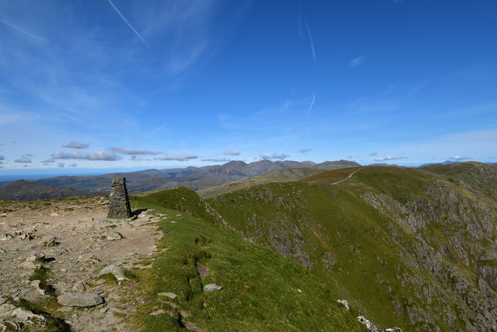 I arrived at the summit at the same time as a couple who had ascended from Goats Hawse and were taking photos of their dog who they'd placed on top of the summit trig point. I was asked would I mind I take a group photo which of course I obliged and was thanked with 'by the way, congratulations on making the summit'