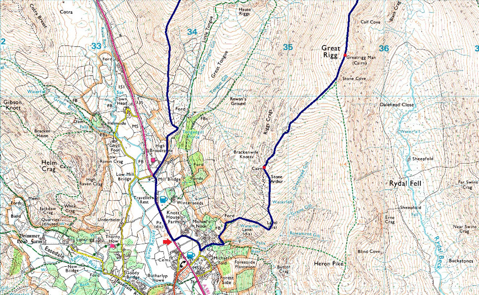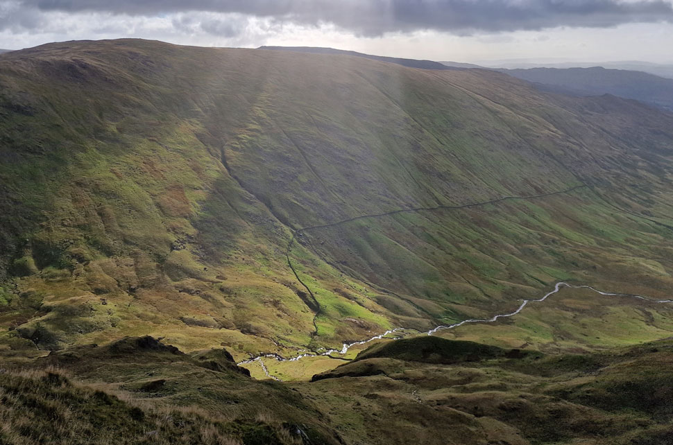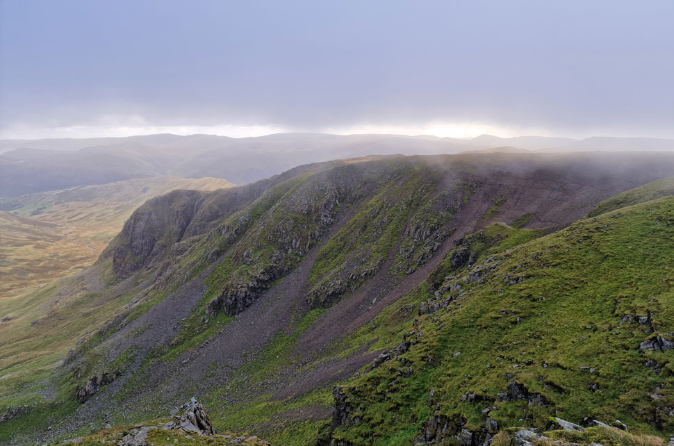 The guy was sat down finishing off a hot drink from a flask and we kinda hit it off straight away him asking me of my route which I returned. The chap had left Patterdale to do 'the round' to which I replied "cool, you heading back via Fairfield or Dollywagon" thinking he was walking the Grisedale Horseshoe I was a little confused when he replied "no down there" pointing towards Tongue Gill. Still confused I replied "so your heading back up via Tongue Gill or Stone Arthur?" "I don't know the names followed by these words "loads of lines looked easy from home"