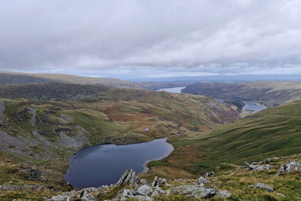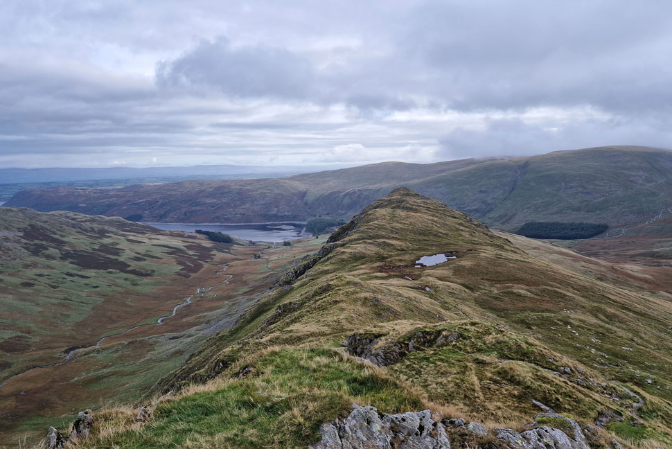 The view down towards Small Water, the Rough Crag Ridge and Haweswater. |