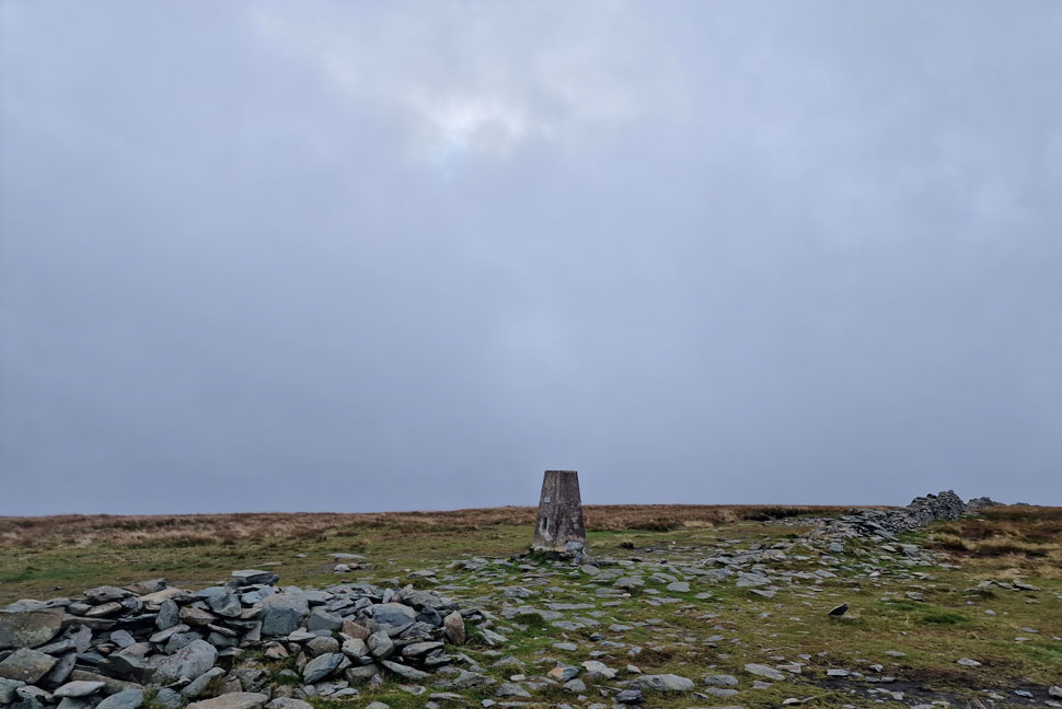 I'd reached the top of Long Stile where I stopped to add a pair of gloves and a hat as my hands and ears where starting to feel the pinch by now. Feeling much more cosy I head off towards the summit trig point and spot the chap who was using the wall as a windbreak while he sat and drank from a flask. I removed my left glove and drew my wedding ring across the trig point making sure I heard the scratch before slipping my glove back on, it's a ritual that I've always done today being that little bit more significant as its my 40th High Street summit.