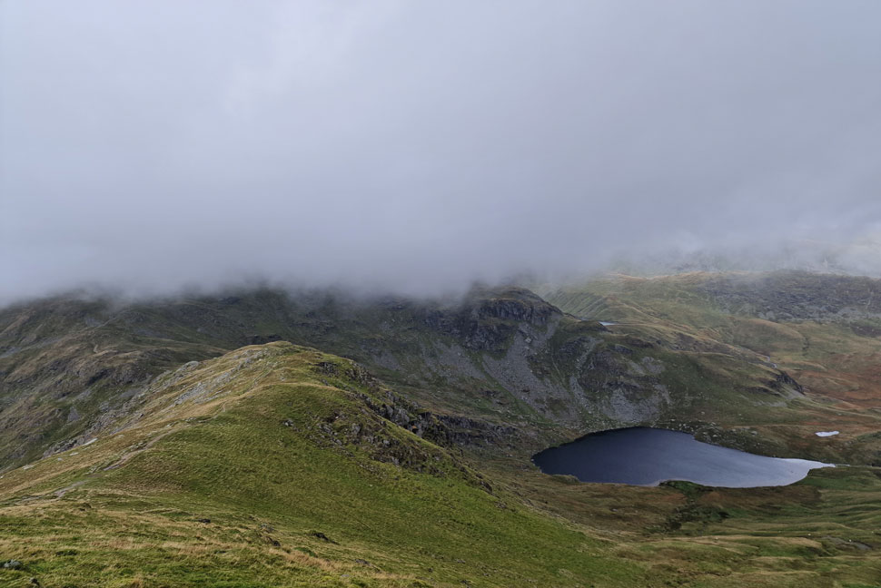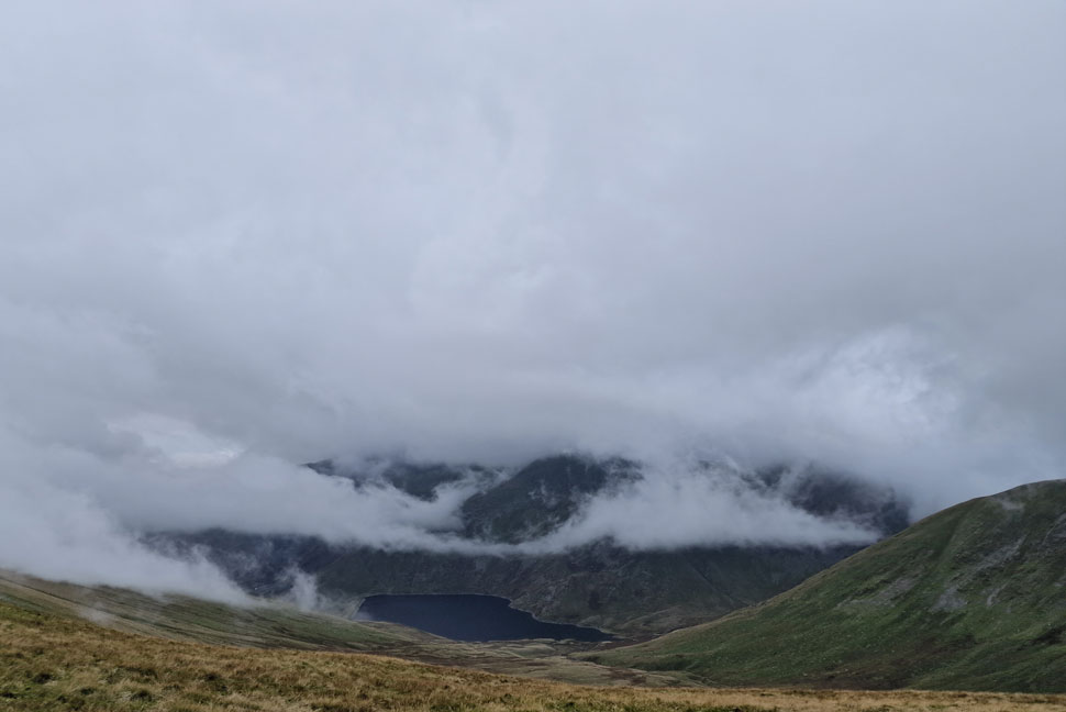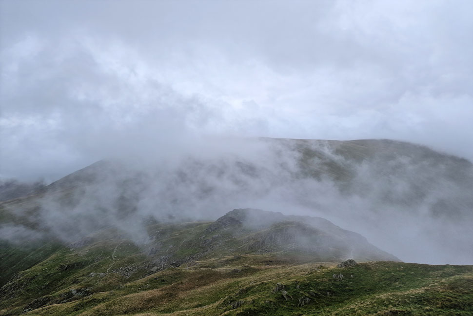 As I descended further it became obvious that the cloud was pouring over the top of Nan Bield Pass from the Kentmere valley. |