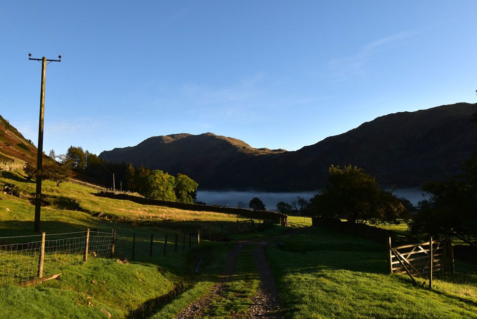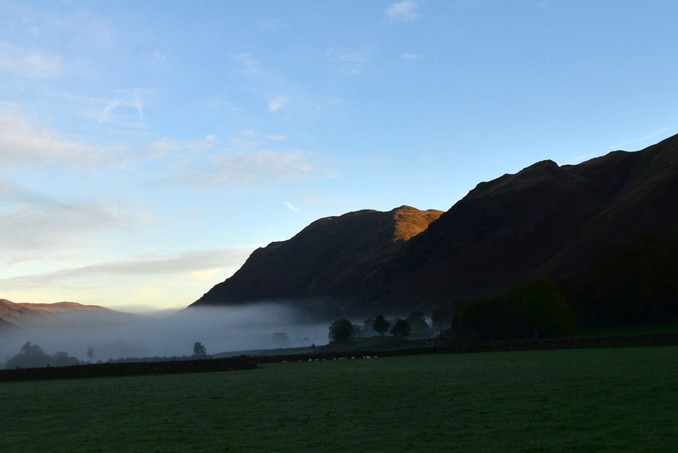 On route to Patterdale I had to stop at Hartsop to grab this quick snap of the low lying mist with a hint of sunshine over Boredale Hause and Place Fell. |