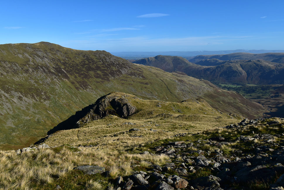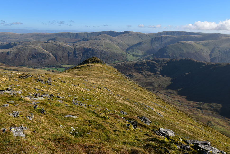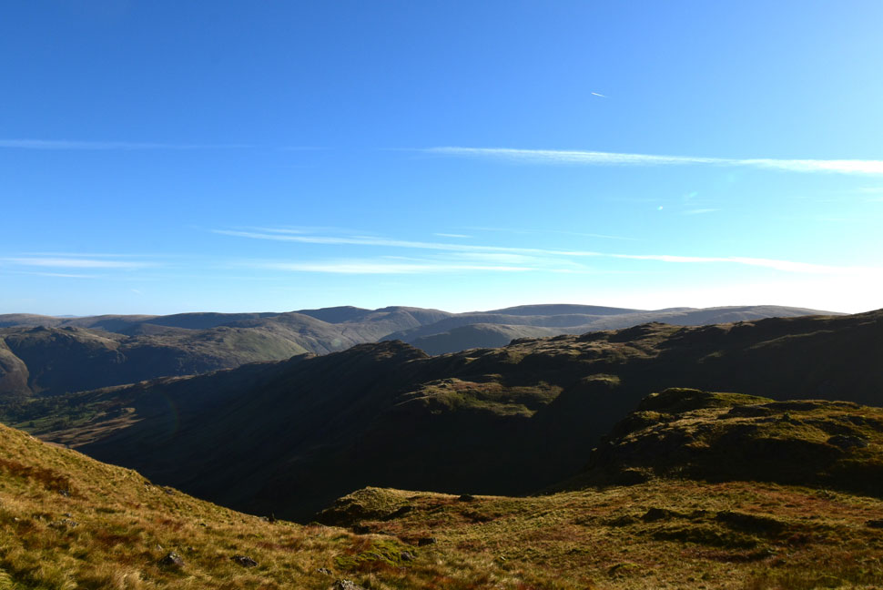 With St Sunday Crag, Gavel Pike, Place Fell, Angletarn Pikes, Beda Fell, Wether Hill, Loadpot Hill and finally Arthur's Pike in the distance. |