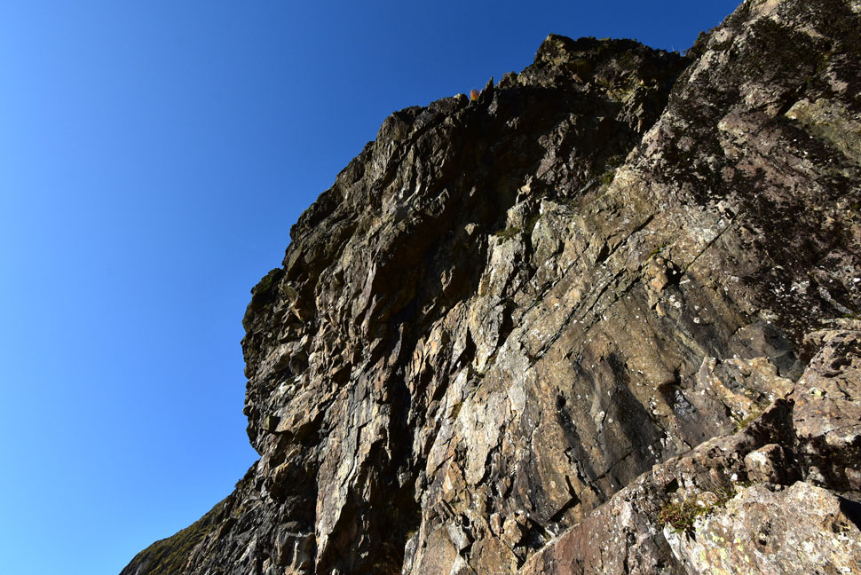 That's the first of the grassy rakes seen over on the right which leads onto a second rake further up between the crags. I predict a third visit to Link Cove in the not too distant future! |